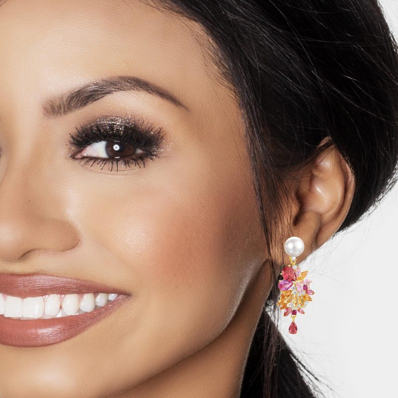 Артистични сребърни обеци с перли, сапфири и рубини