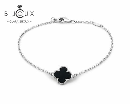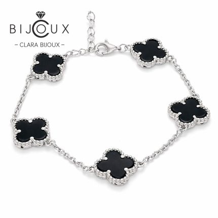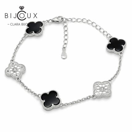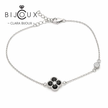 Сребърна гривна с детелинка от черен ахат и CZ – Clara Bijoux