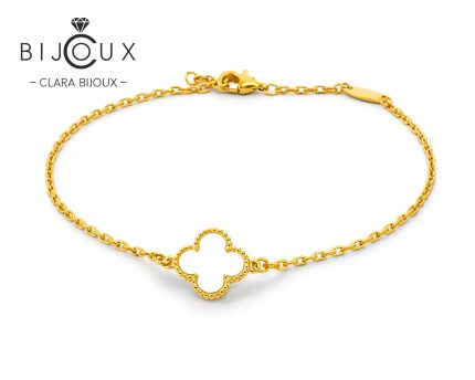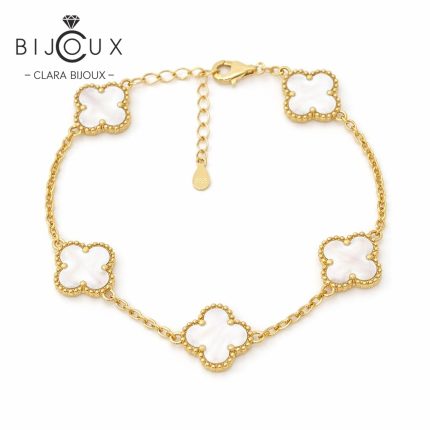 Позлатена сребърна гривна с детелинка от седеф Clara Bijoux