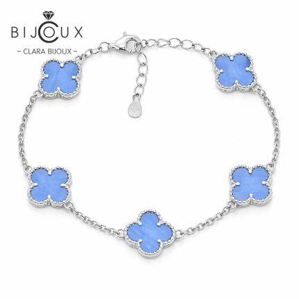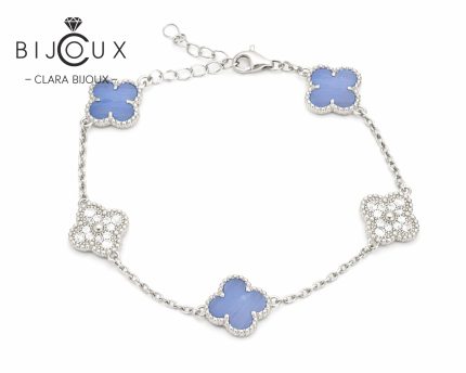 Сребърна гривна с детелинка от синтетичен пиетерсит – Clara Bijoux