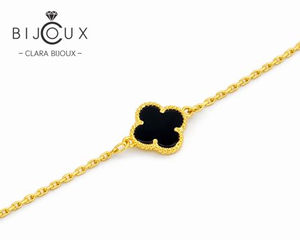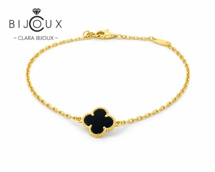 Позлатена сребърна гривна с детелинка от черен ахат и CZ – Clara Bijoux