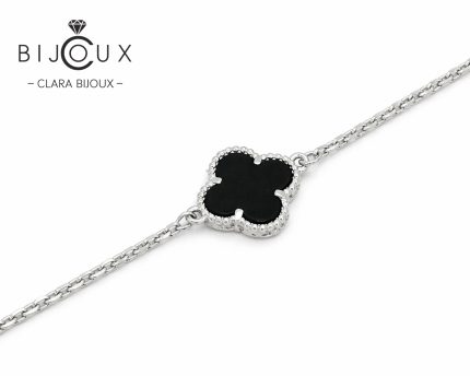 Сребърна гривна черен ахат детелина Clara Bijoux