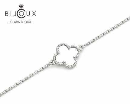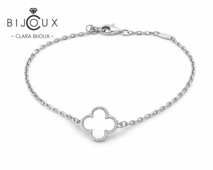 Изискана сребърна гривна с бял CZ и детелинки Clara Bijoux
