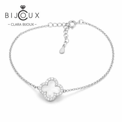Изискана сребърна гривна с бял CZ и детелинки Clara Bijoux