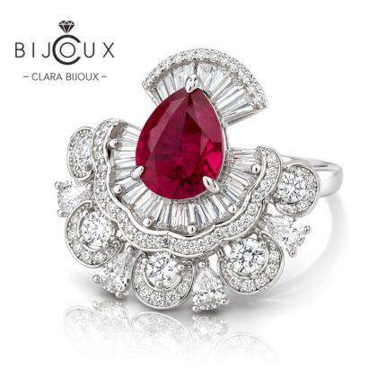 Дизайнерски сребърен пръстен червен камък Clara Bijoux | Кралско излъчване