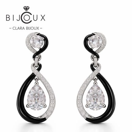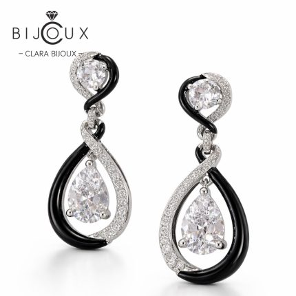 Сребърни обеци с емайл – бял CZ | Clara Bijoux