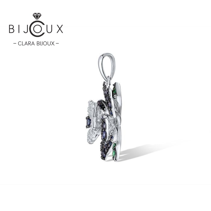 Сребърно емайлирано колие с цветя и зелен шпинел