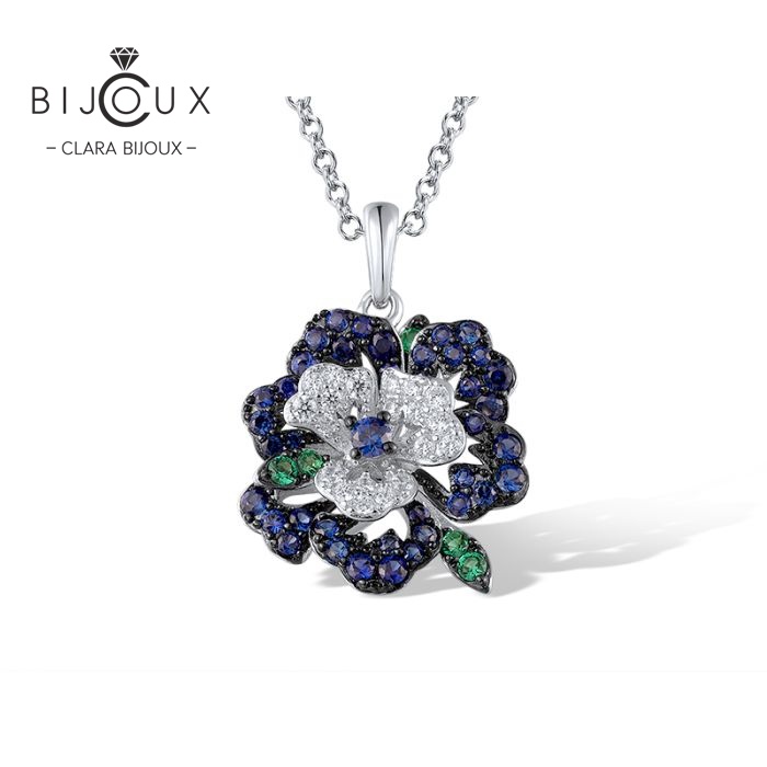 Сребърно емайлирано колие с циркони | Clara Bijoux