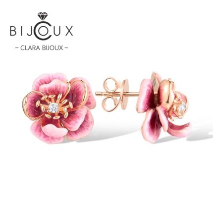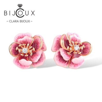 Бутикови сребърни обеци розово цвете Clara Bijoux | Нежен разкош