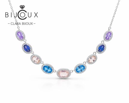 СРЕБЪРНО КОЛИЕ С ЦВЕТНИ КАМЪНИ