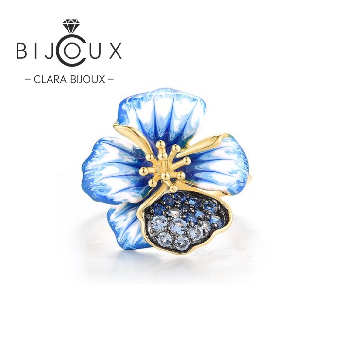Сребърен пръстен с емайл и цвете | Clara Bijoux