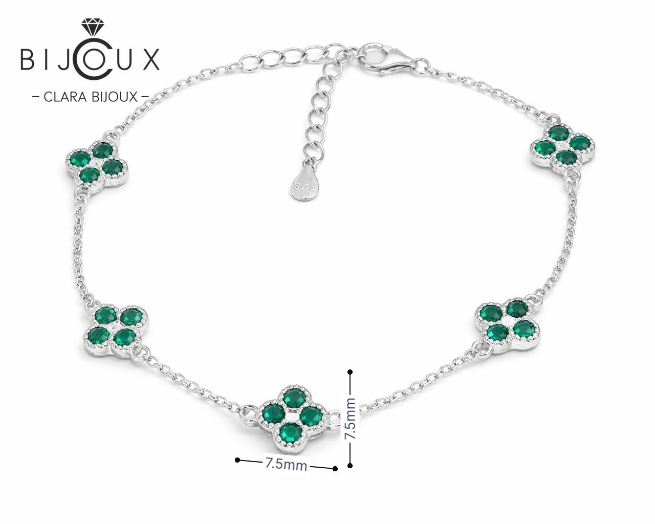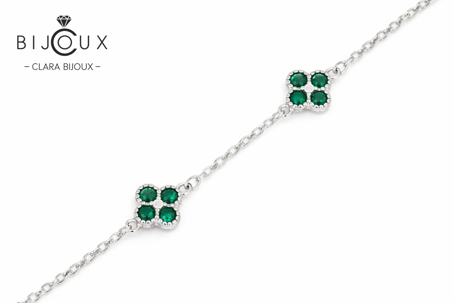 Фина сребърна гривна с детелинки и зелени камъни Clara Bijoux