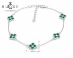 Създадена за дамите, които ценят дискретната елегантност, тази изключителна гривна от Clara Bijoux е изработена от висококачествено родирано сребро 925 и впечатлява с изящен дизайн и модерно излъчване. Нежните четирилистни детелинки – символ на късмет и женственост – са украсени с искрящи зелени CZ камъни, допълнени от малки бели акценти, които добавят дълбочина и блясък.