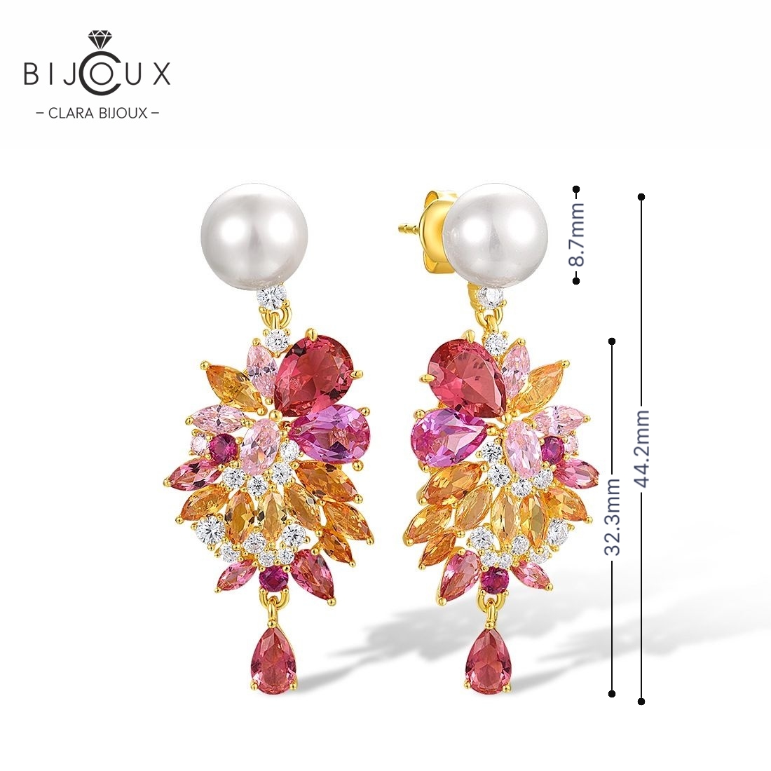 Тези обеци Clara Bijoux са като малка симфония от цветове и светлини. Те съчетават блясъка на благородното сребро 925 с топлината на жълтата позлатка, която обгръща всяко камъче като златна рамка на произведение на изкуството.
