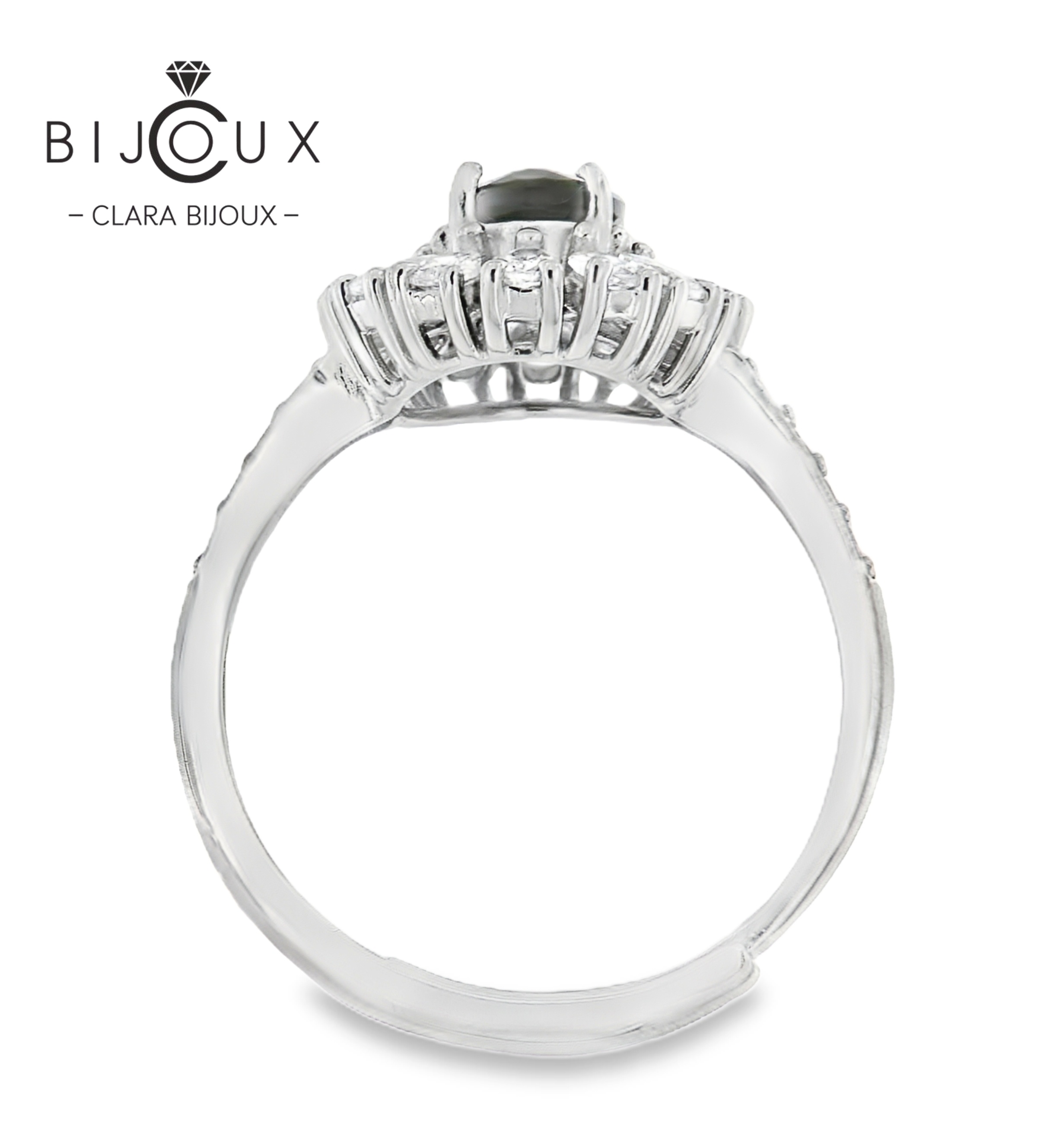 луксозен пръстен с Диопсид и бели CZ камъни Clara Bijoux