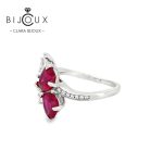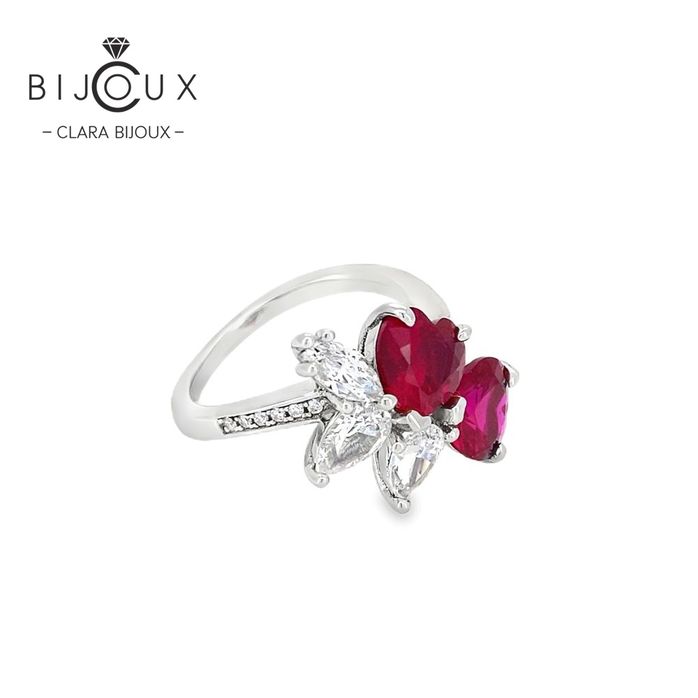 В дизайна са използвани червени сърцевидни CZ камъни, които символизират страст, любов и емоция, допълнени от бели CZ камъни, добавящи изискан блясък и контраст. Комбинацията създава луксозно излъчване и подчертава централния мотив на пръстена.