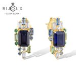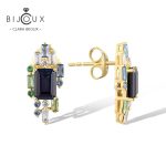 Обеците са изработени от сребро проба 925 и са завършени с жълта позлатка, която добавя топлина и луксозен завършек. Каменната композиция включва синтетичен сапфир като централен акцент, допълнен от зелен и син шпинел и бели CZ, които осигуряват светлина и баланс. Всеки камък е прецизно инкрустиран, гарантирайки устойчивост, равномерен блясък и топ качество.
