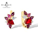 Тези елегантни дизайнерски обеци Clara Bijoux впечатляват с богата композиция и драматично цветно излъчване. Формата е изградена като хармоничен клъстер от камъни с различна големина и шлифовка, които създават дълбочина, движение и усещане за разкош. Централният елемент привлича погледа, а околните цветни акценти подчертават бижуто като истинско произведение на бутиковия дизайн.