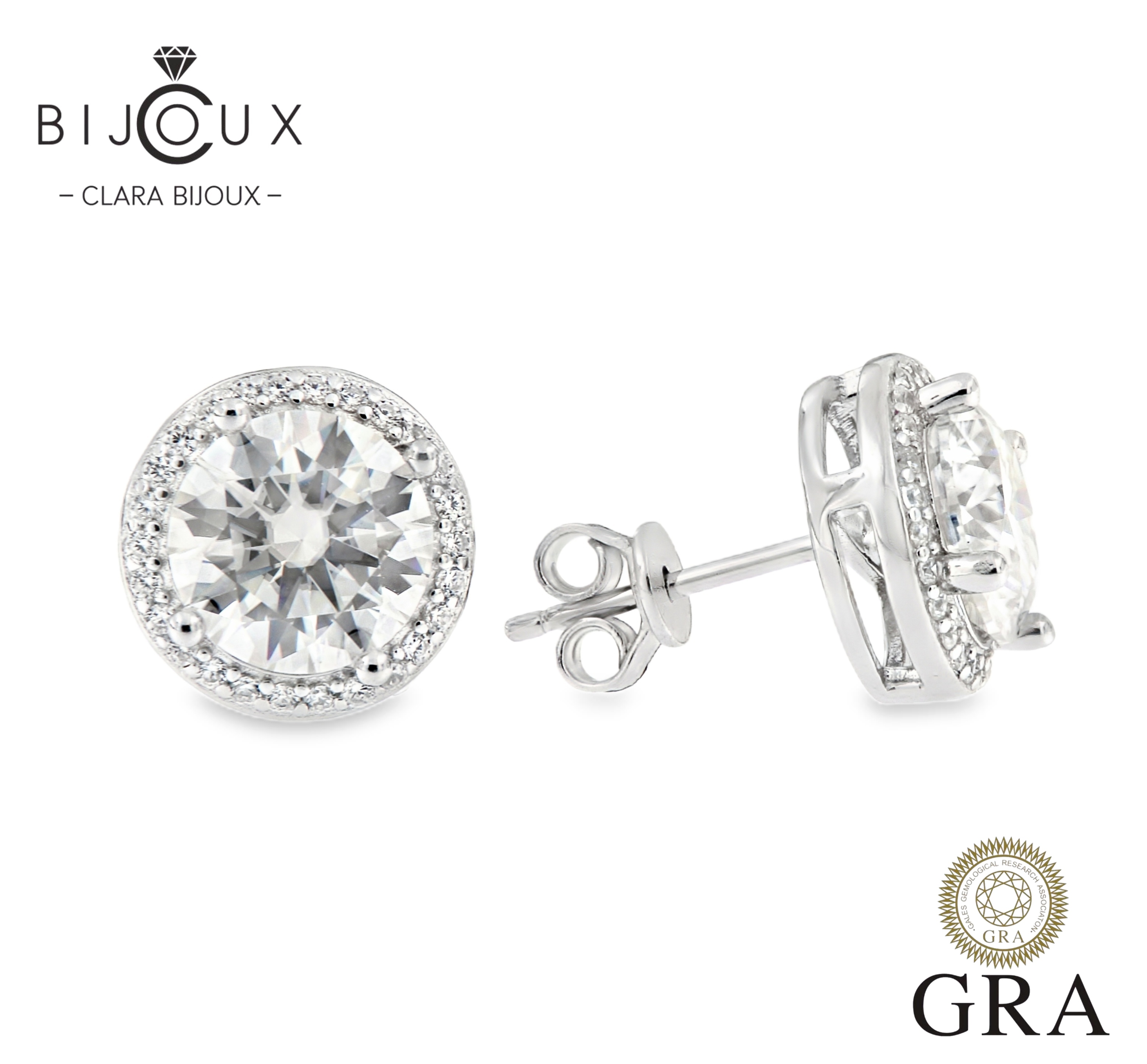 елегантни сребърни обеци с мойсанити 4ct Halo Clara Bijoux