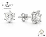 Елегантни обеци от сребро 925 с родиево покритие и блестящи мойсанити 2ct общо (2×1ct). Сертификат GRA, луксозна LED кутия и подаръчна торбичка – идеалният избор за изискан подарък.