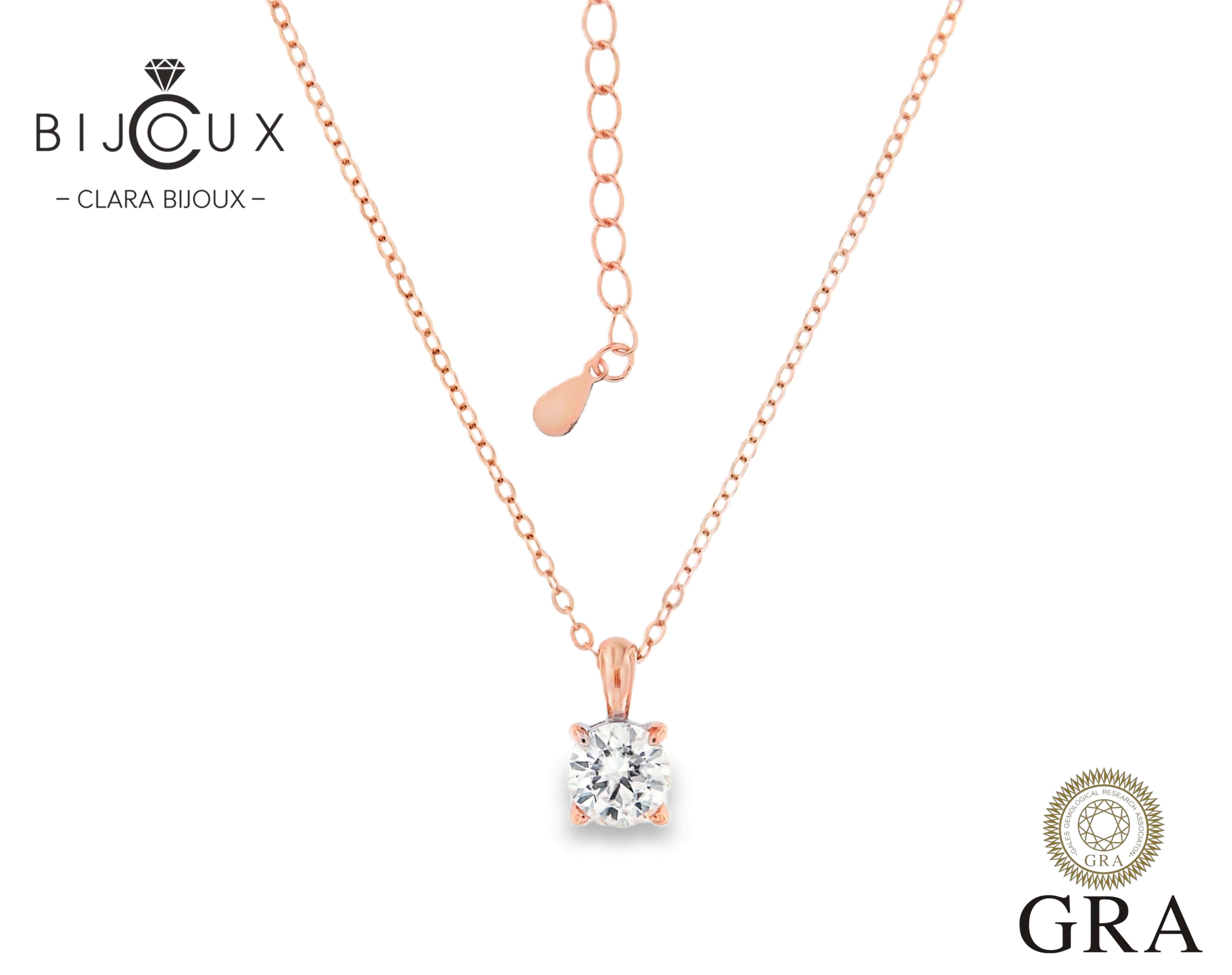 луксозно колие с мойсанит 1ct и розово злато Clara Bijoux