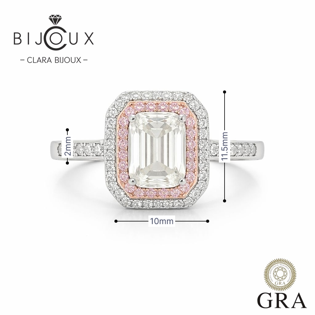 Луксозен сребърен комплект Clara Bijoux с мойсанити emerald cut 2.0ct – пръстен и обеци с розова и бяла позлатка, GRA сертификат и подаръчна LED кутия.