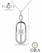 Колието впечатлява с изцяло модерен геометричен дизайн, в чийто център блести мойсанит 1.0ct – камък с диамантен ефект, сертифициран от GRA 📜 Структурата на висулката съчетава стил и минимализъм, подчертан от фини инкрустации от малки бели камъни. Перфектно бижу за жени с усет към съвременната елегантност.