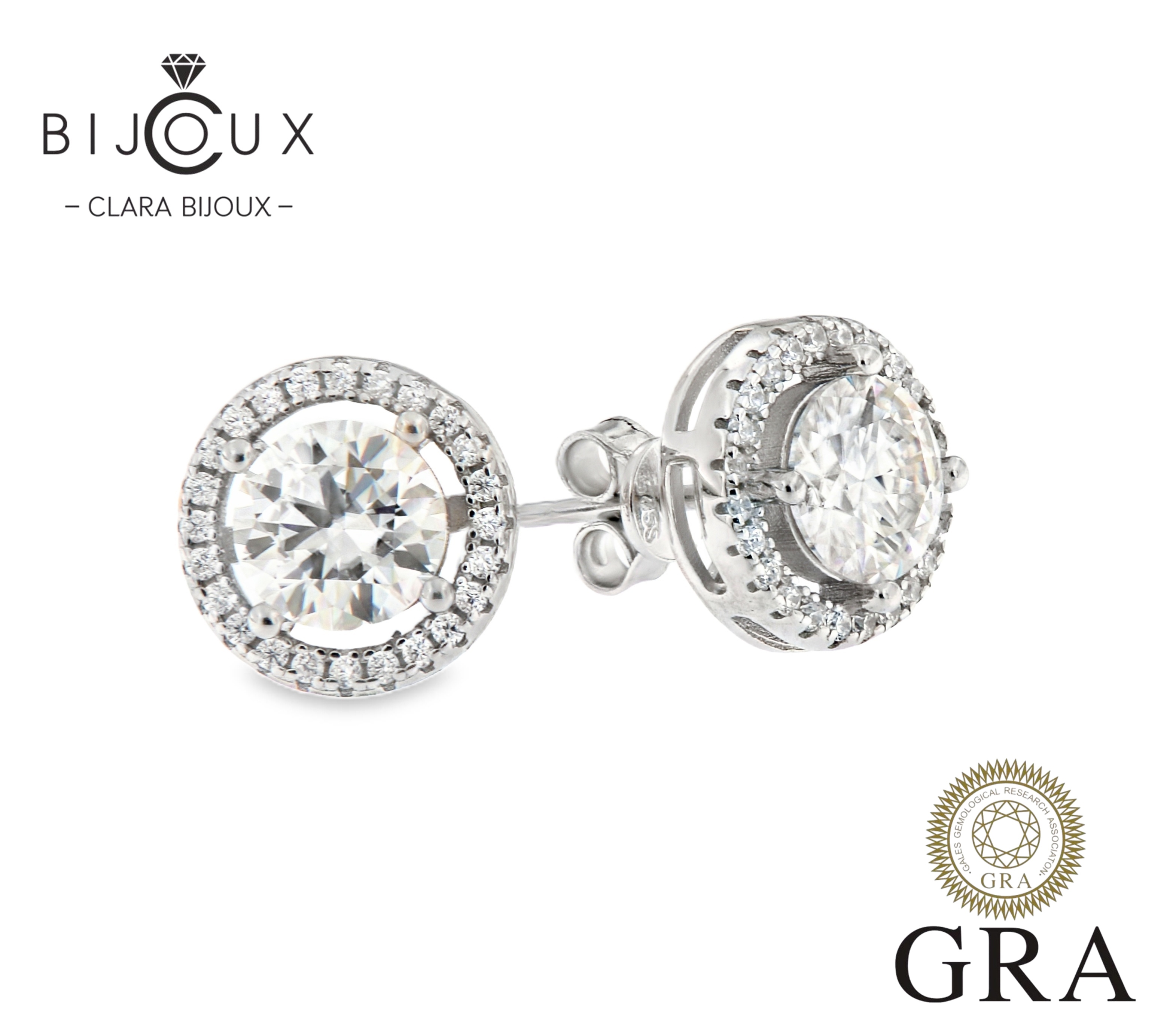 Изключително елегантни сребърни обеци Clara Bijoux с мойсанити 2ct (2×1ct), изработени от сребро 925 с родиево покритие. Предлагат се с GRA сертификат, LED кутия и подаръчна торбичка – перфектен избор за подарък.
