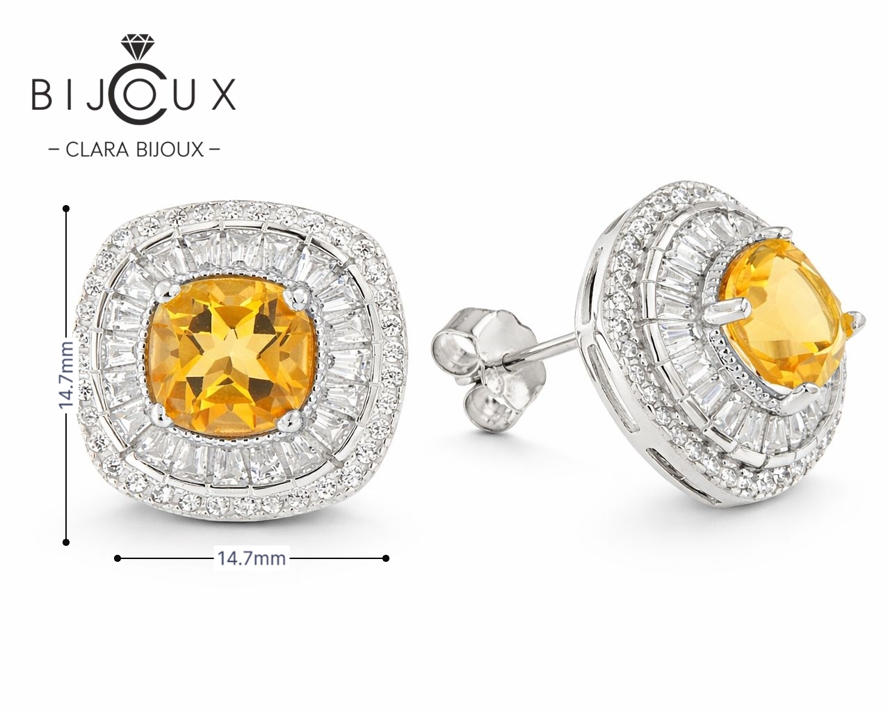 Тези луксозни сребърни обеци с естествени цитрини Clara Bijoux са създадени за жените, които обичат да сияят с естествена елегантност и увереност. Изработени от сребро 925 с родиево покритие, те предлагат блясък, издръжливост и антиалергична защита. В центъра на всяка обеца е разположен естествен цитрин с общ карат 2ct, обграден от ореол от фино фасетирани бели CZ камъни, които отразяват светлината по уникален начин.