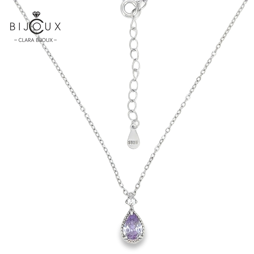 Това луксозно сребърно колие лилав циркон Clara Bijoux е въплъщение на женственост и стил. Централният бледолилав циркон в капковидна форма излъчва нежност и елегантност. Той е съчетан с малък бял CZ камък, който подчертава сиянието му и придава допълнителна изтънченост. Родираното сребро 925 защитава от потъмняване и осигурява траен блясък, като придава на колието модерно, но класическо излъчване.