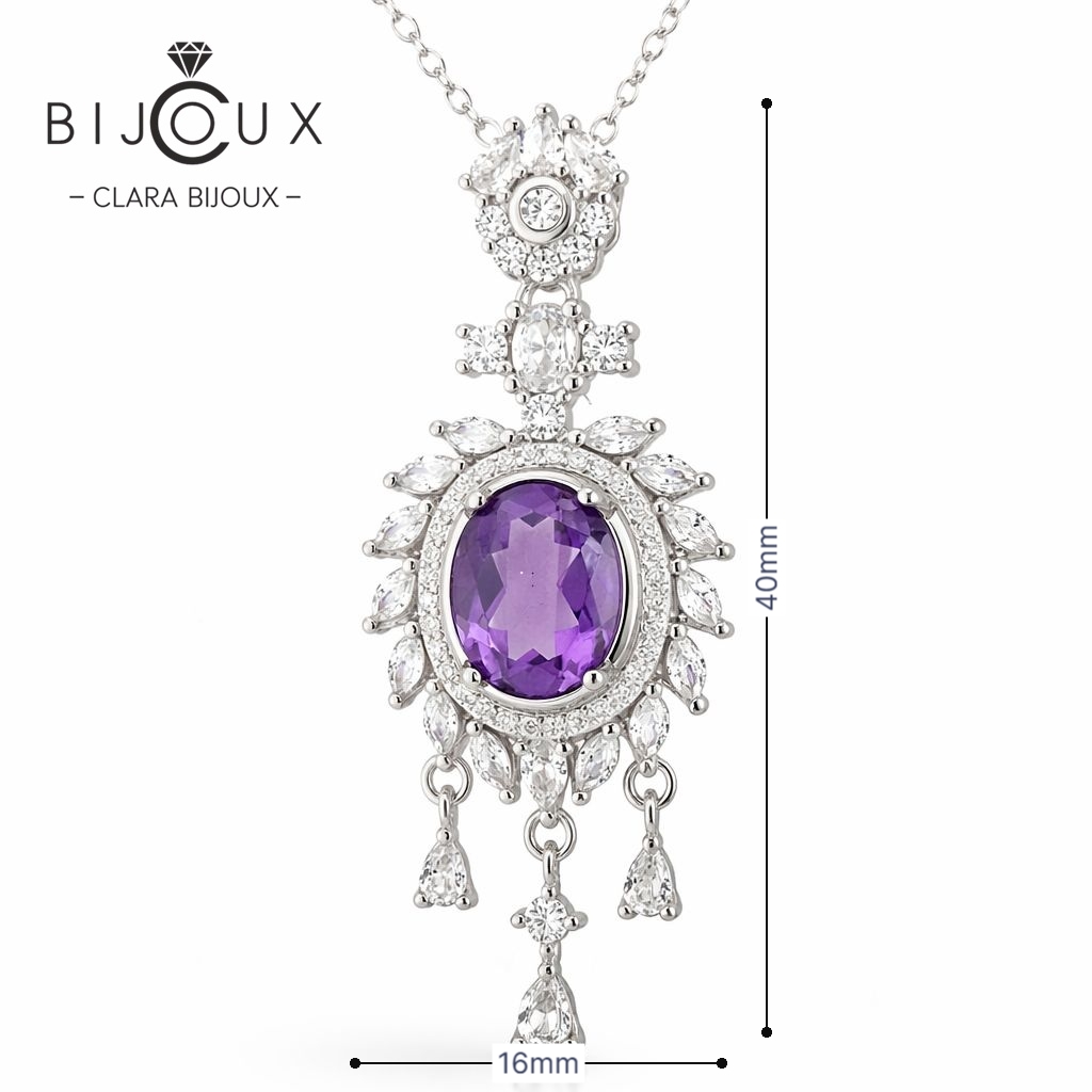 Аметистът е камък на спокойствието, интуицията и духовната сила. Това сребърно колие с естествен аметист Clara Bijoux е вдъхновено от класическите високи бижутерийни модели, съчетани с модерна интерпретация. Подходящо е за дами, които търсят бижу със силно излъчване, емоция и индивидуалност.