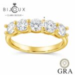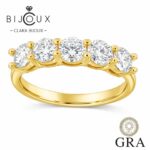 Пръстенът JKM172 от Clara Bijoux е съвършена комбинация от златист стил и пет бляскави мойсанита, всеки с тегло 0.3ct, сертифицирани от GRA. Подходящ за всеки повод, който заслужава да бъде отбелязан със стил и финес.