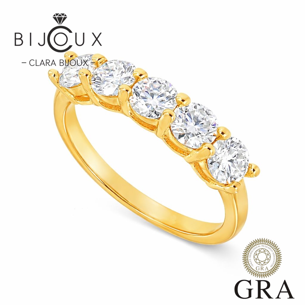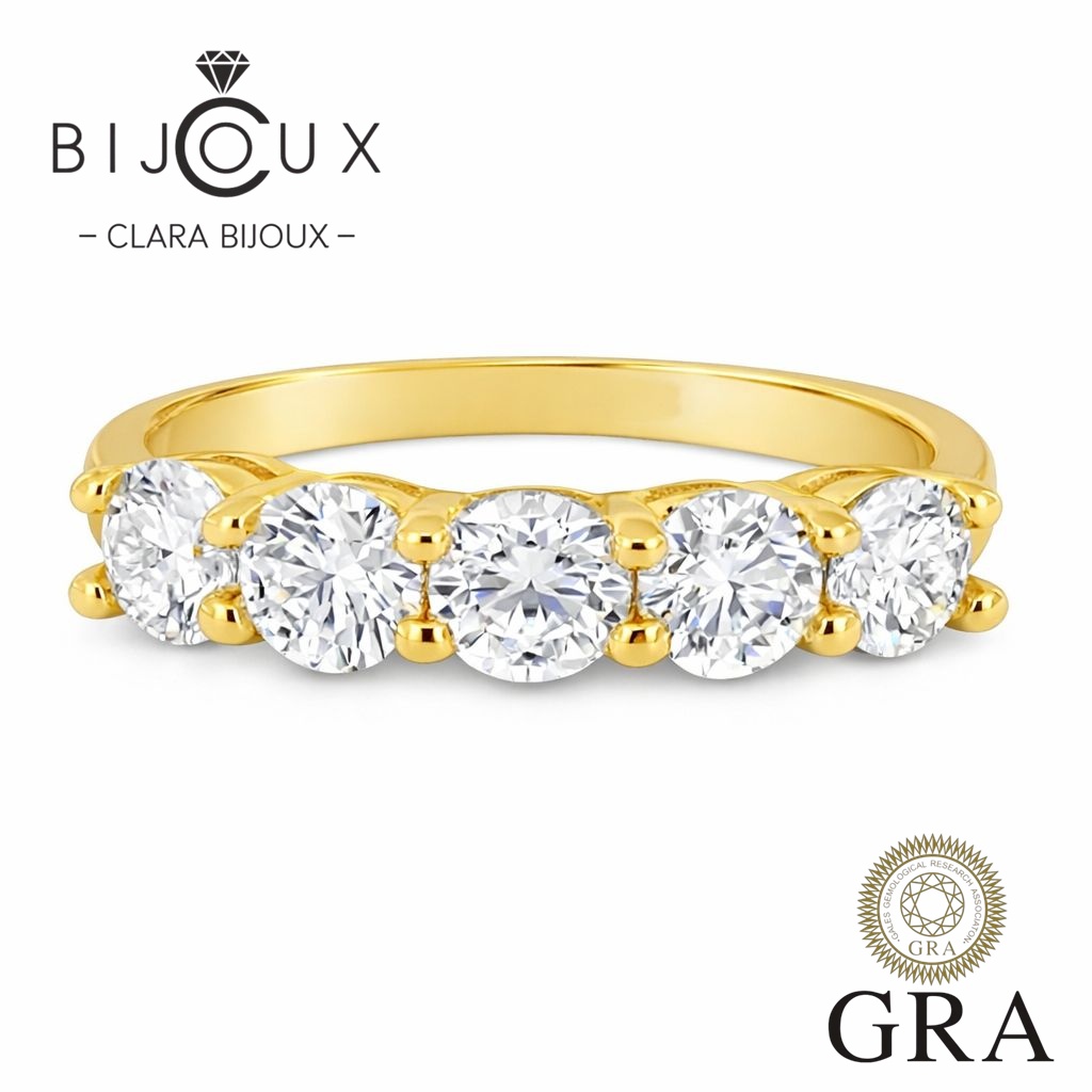 Пръстен с пет мойсанита Clara Bijoux 💛 Сертифициран 💍