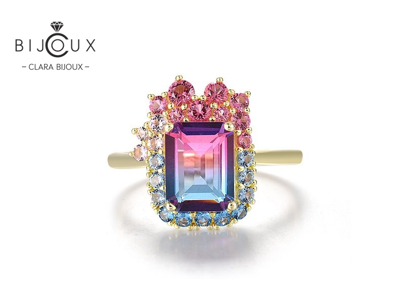 Този изключителен пръстен от новата колекция на Clara Bijoux съчетава изящество, цветови контраст и стилна визия. Изработен е от висококачествено сребро 925 с жълта позлатка, което придава топъл и луксозен блясък. Централният акцент е синтетичният морганит в нежно розов оттенък, който се съчетава с дълбокото сияние на синия шпинел. Тази комбинация създава изключителна хармония между нежност и сила.