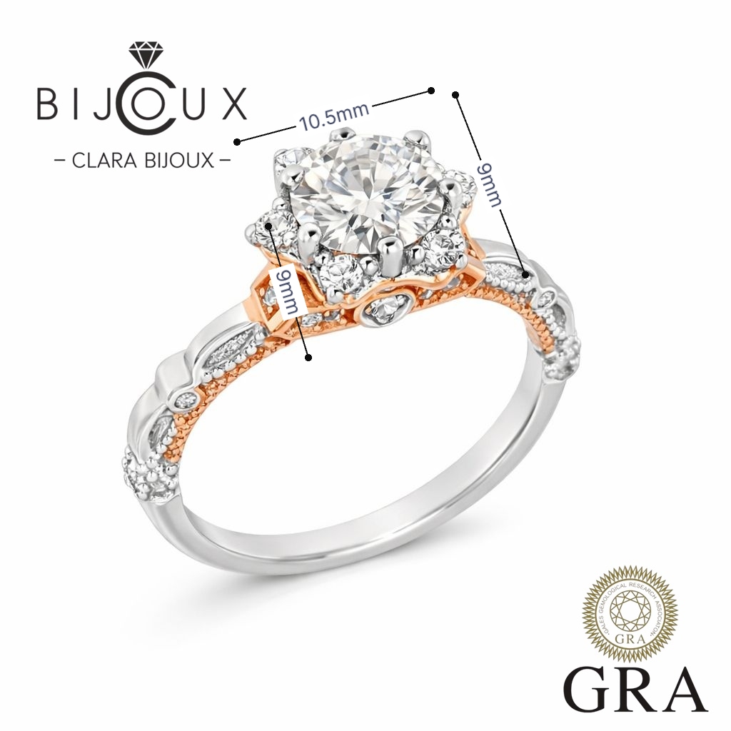 Ако търсите перфектния пръстен за своята специална половинка, този сребърен годежен пръстен с мойсанит 1.0ct е идеалният избор. Съчетание от класически стил и модерна визия, това бижу е изработено от висококачествено сребро 925 с изящни детайли в розово златно покритие.