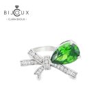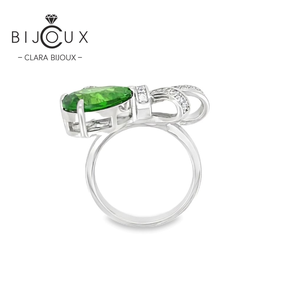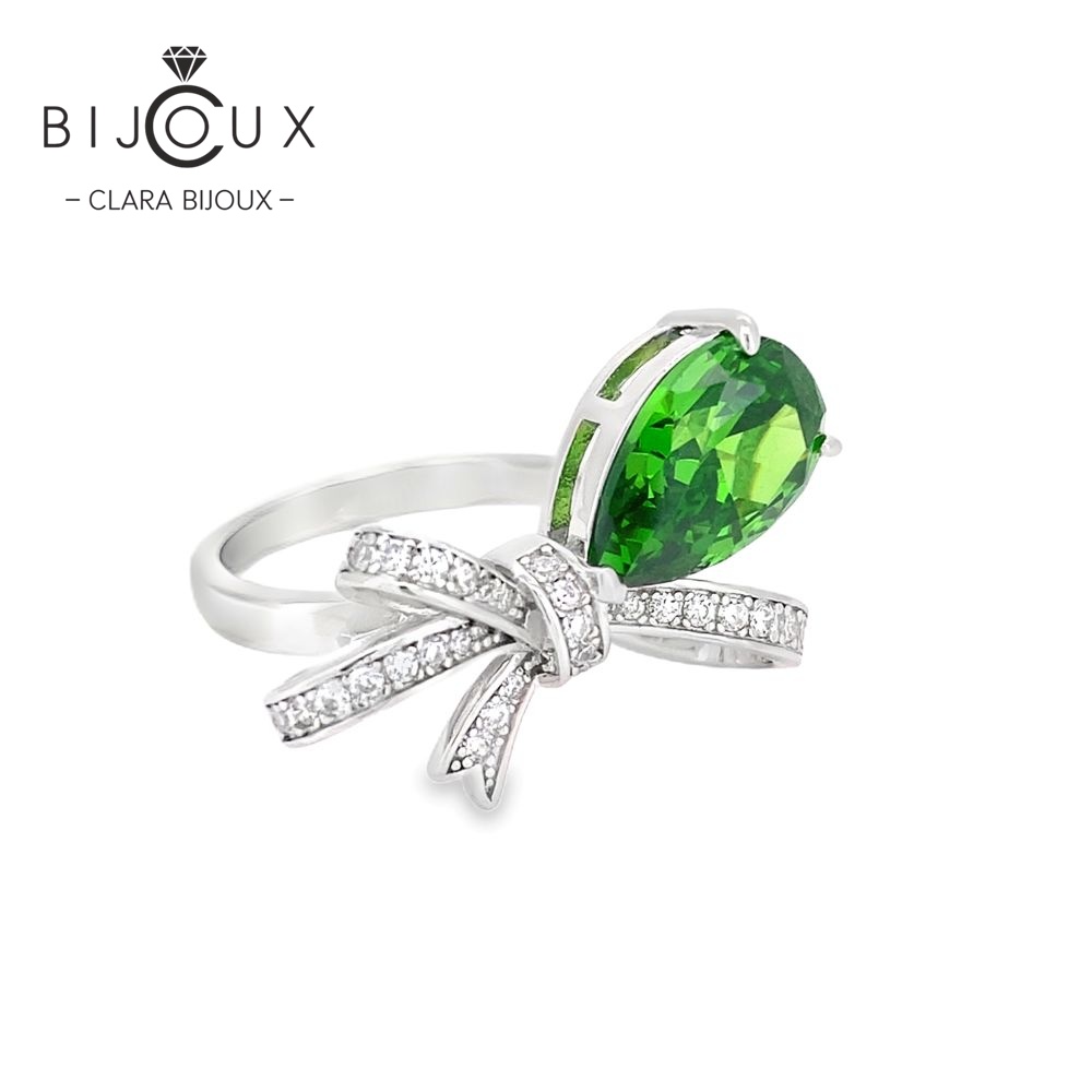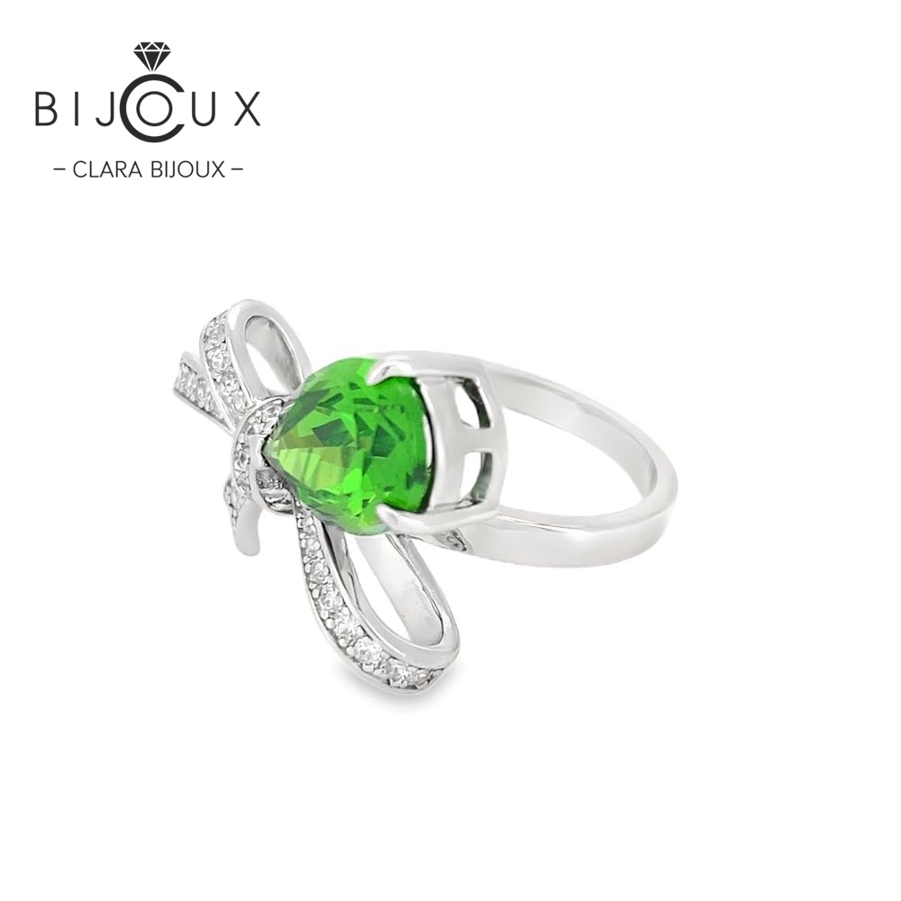 Сребърен пръстен със зелен шпинел и бели циркони | ClaraBijoux