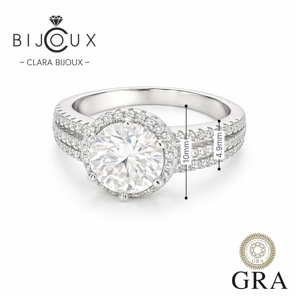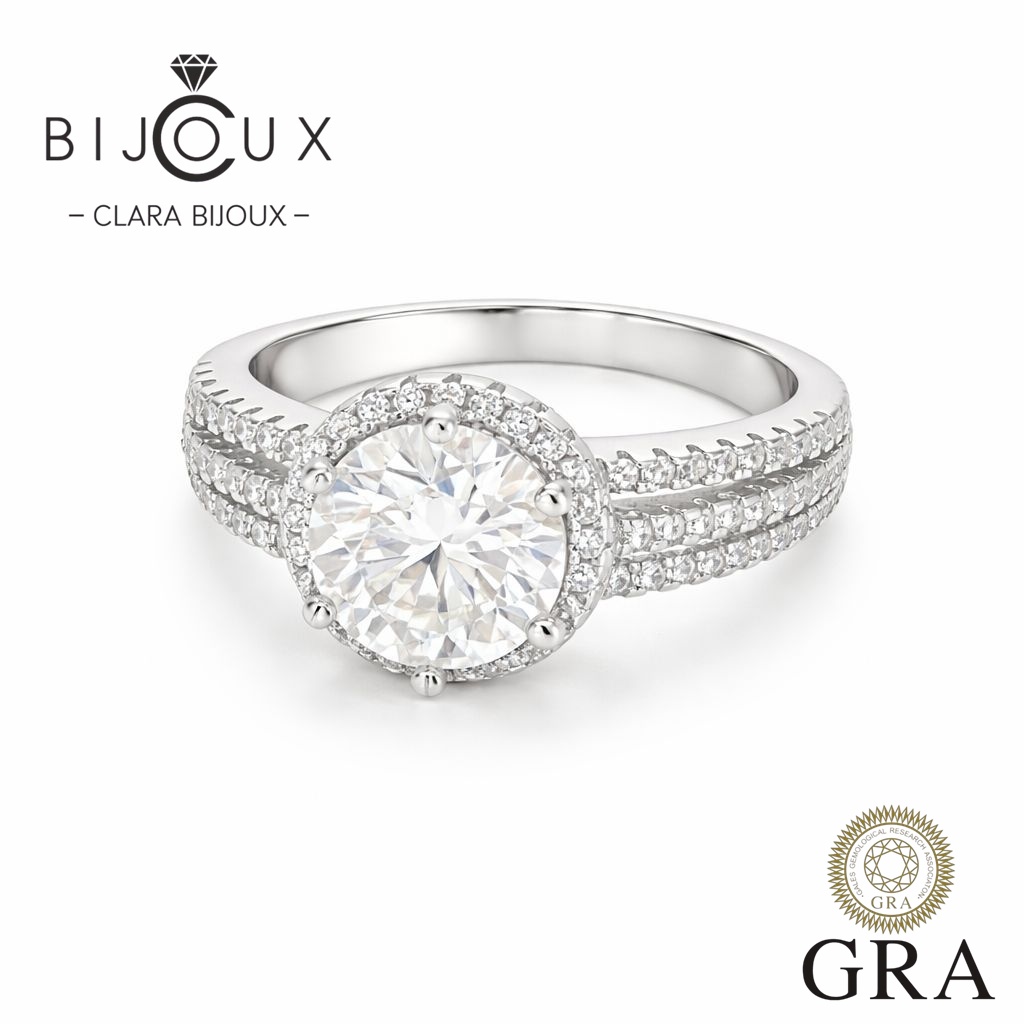 Сребърен пръстен мойсанит 2ct Clara Bijoux – луксозен ореол