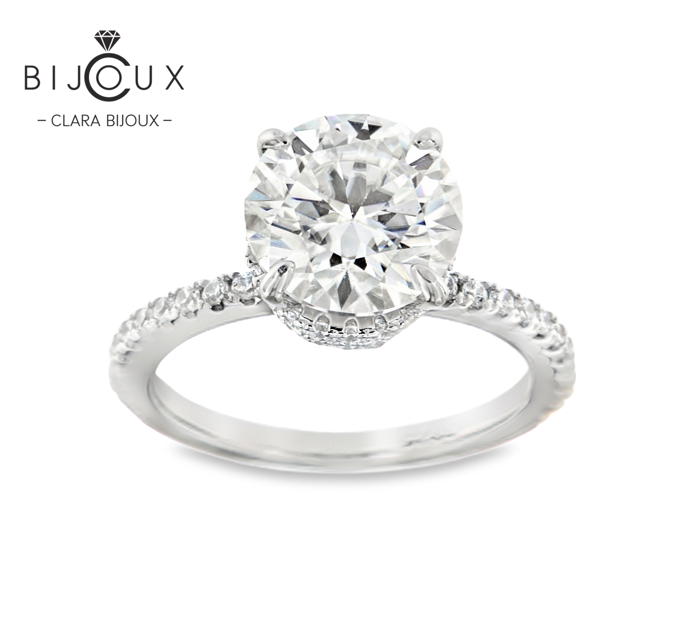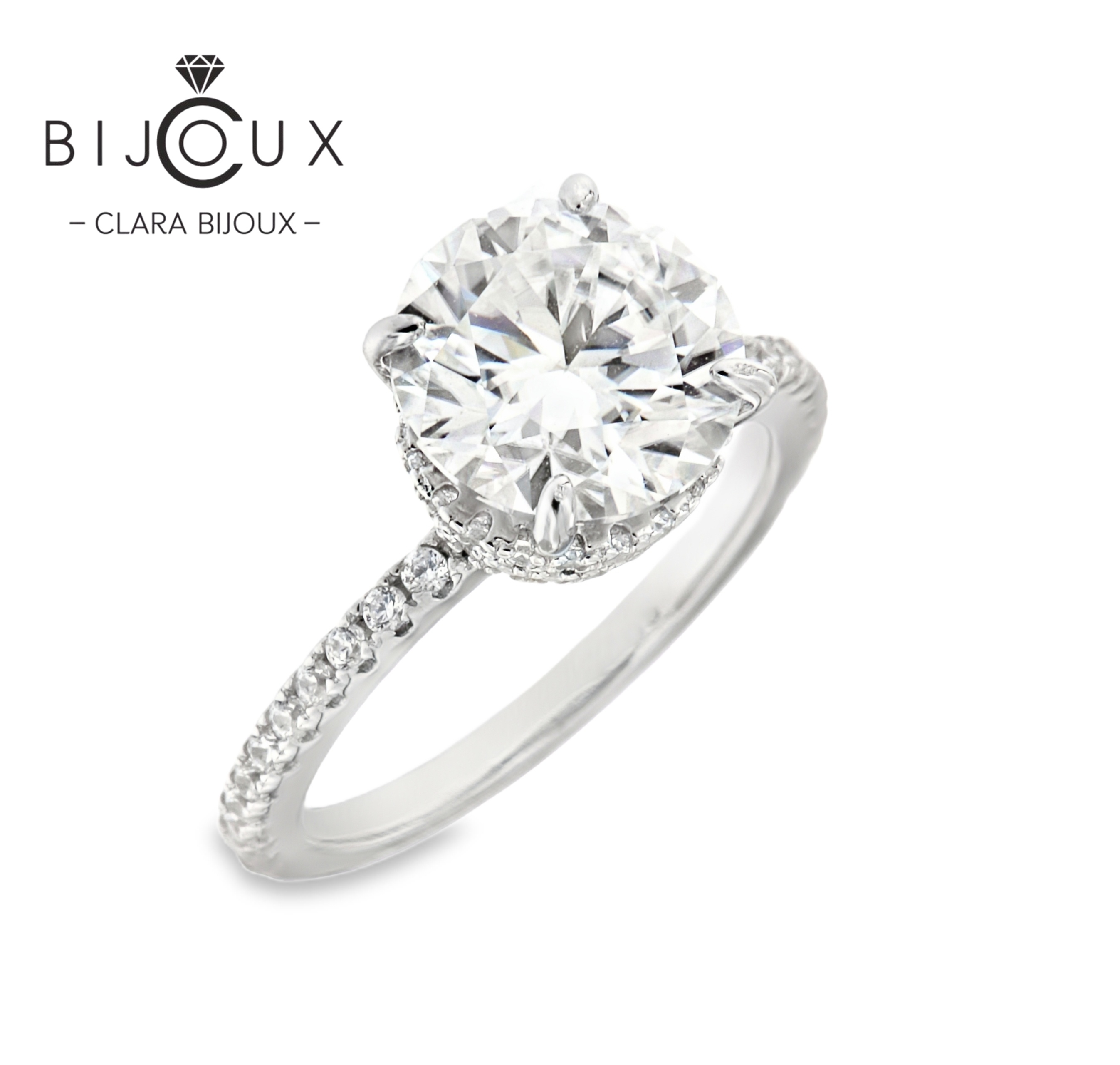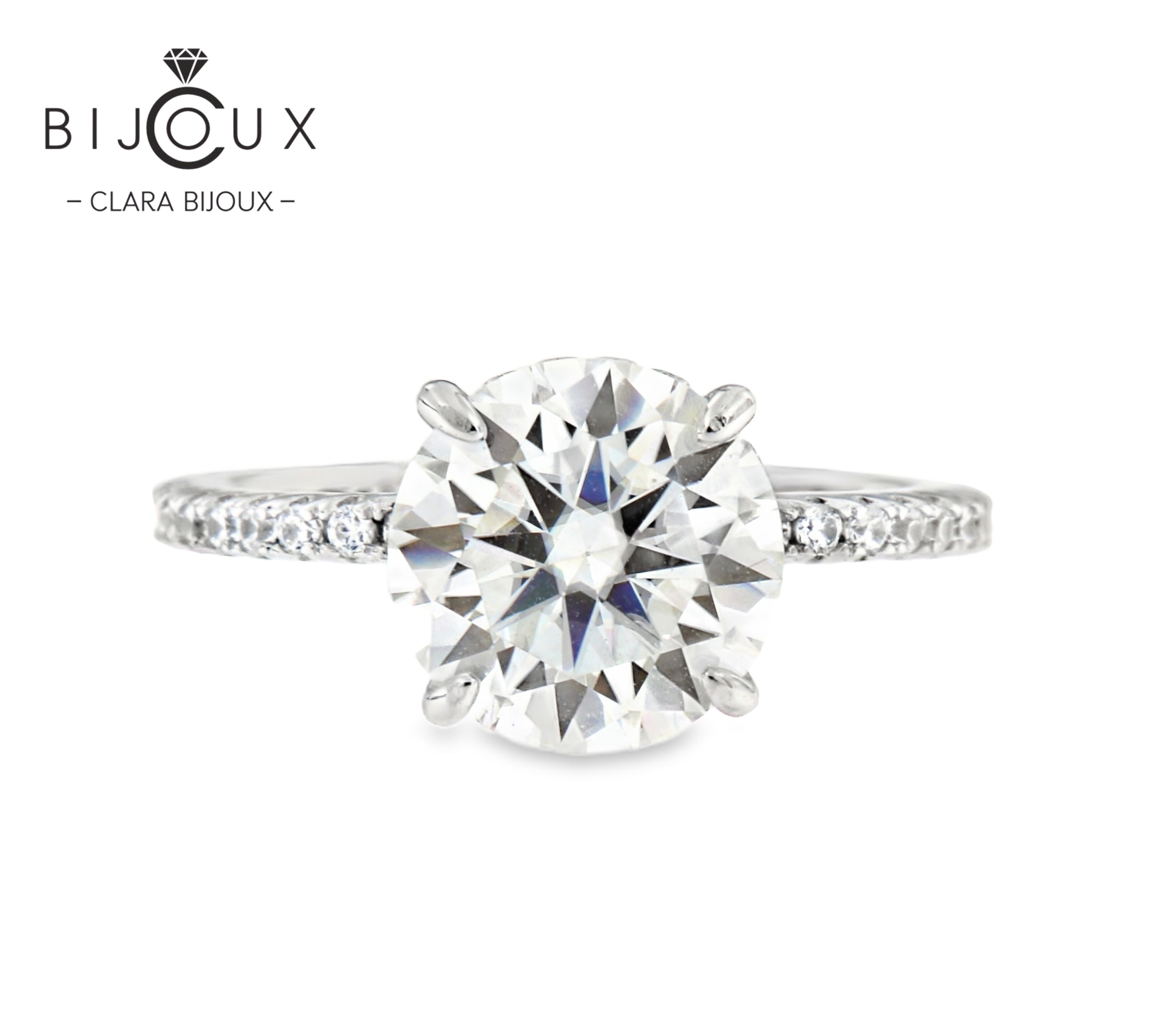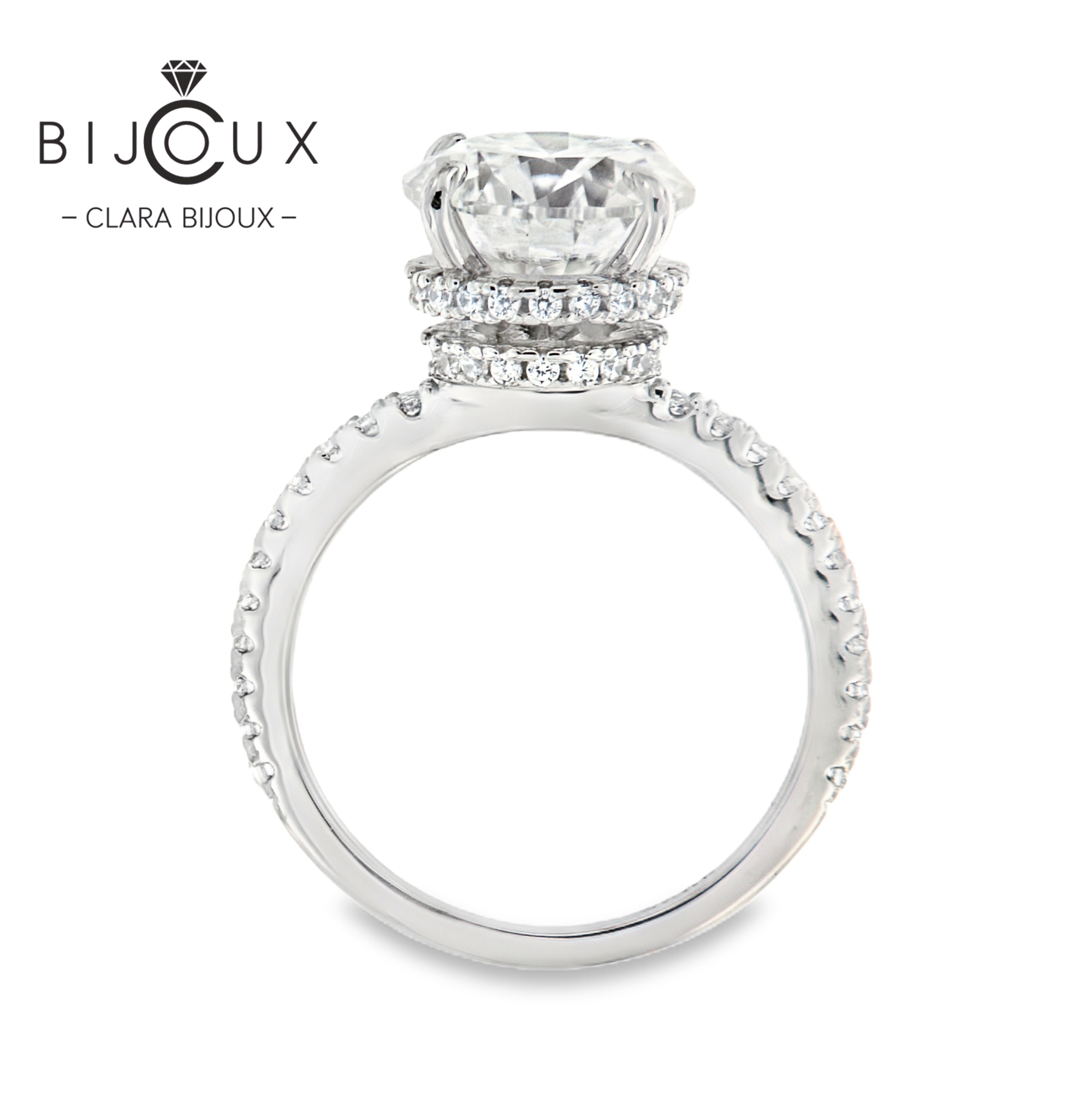 сребърен пръстен мойсанит 3ct clara bijoux – изглед отпред