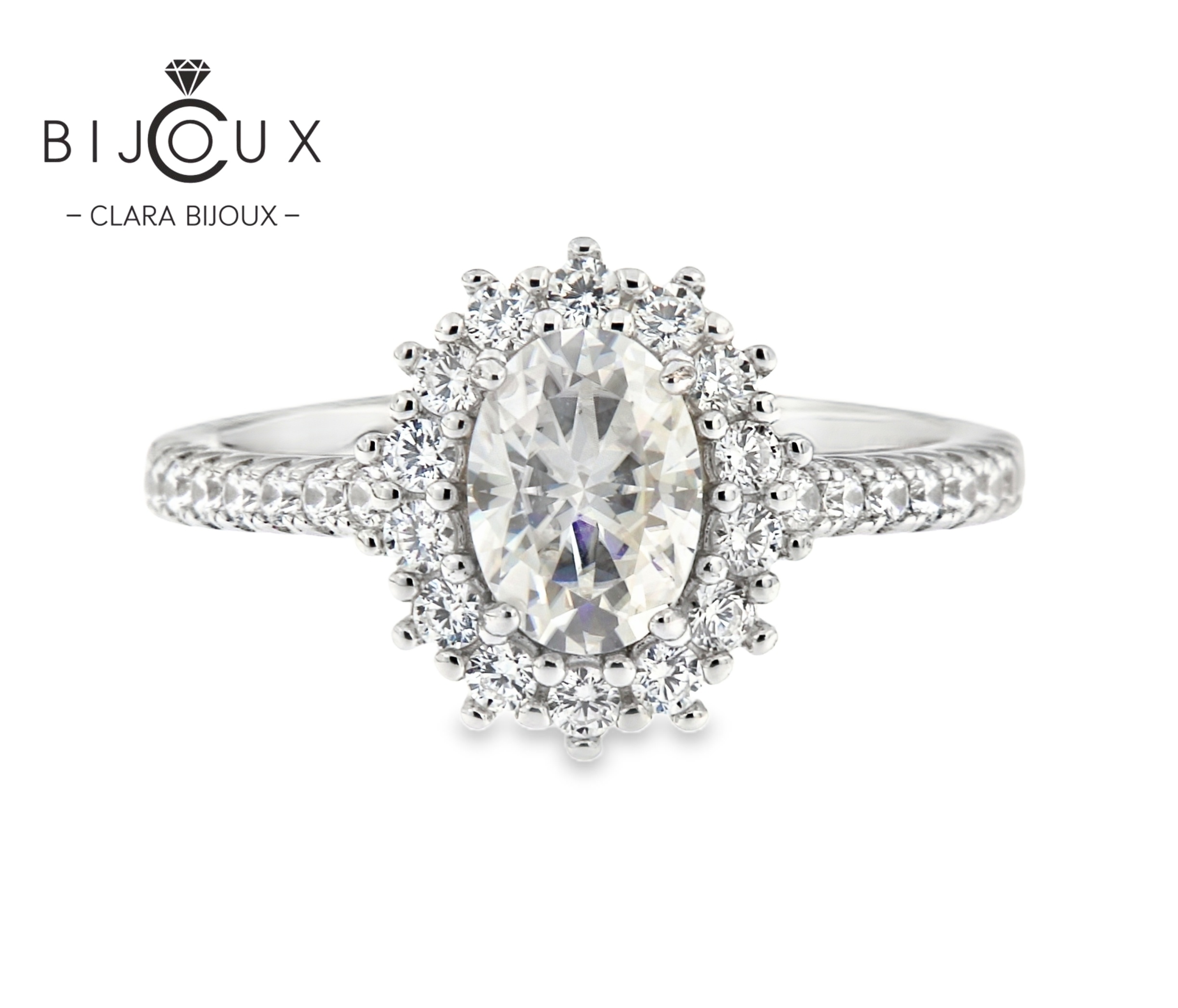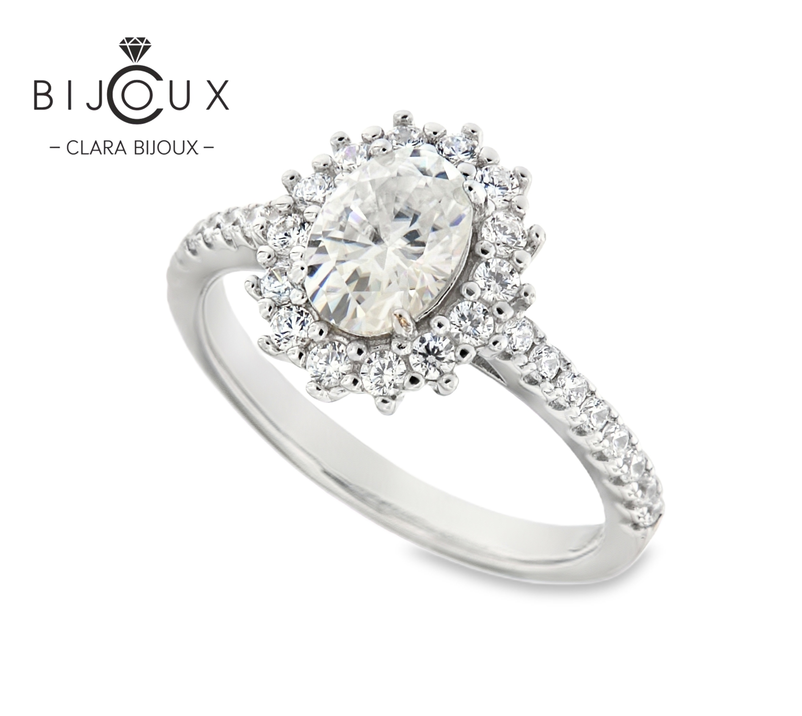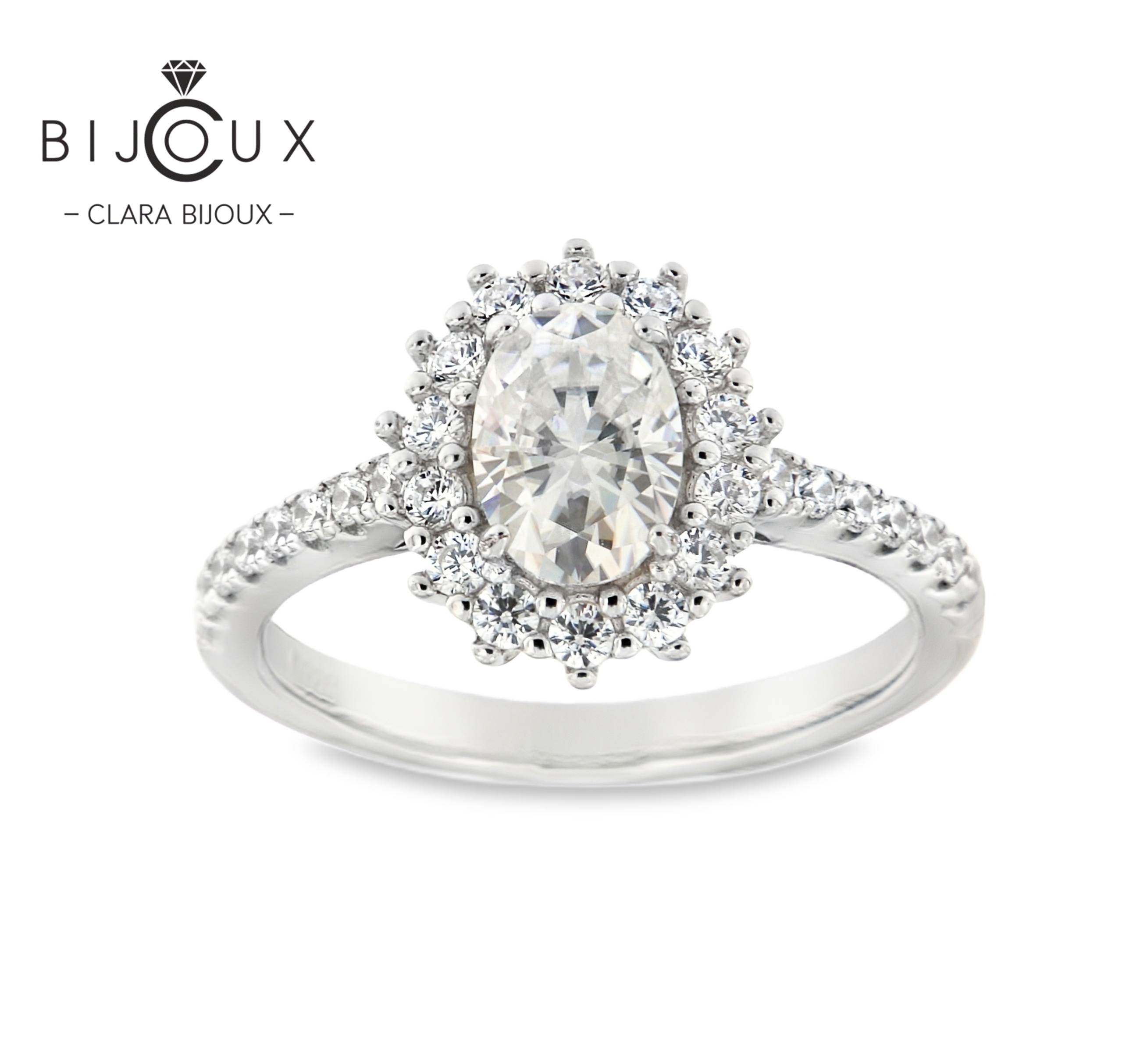 сребърен пръстен овален мойсанит clara bijoux – изглед отпред