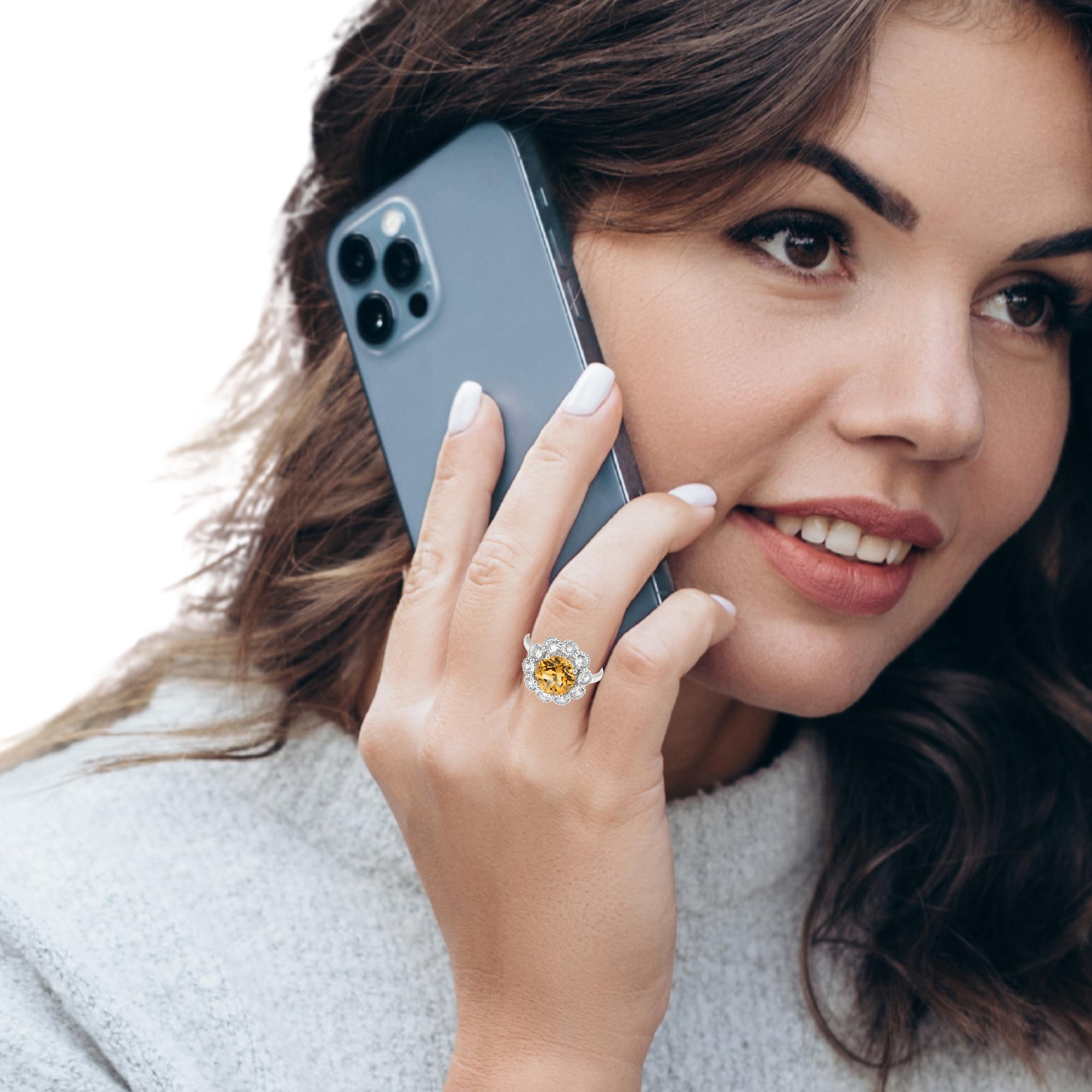 Този сребърен пръстен с цитрин Clara Bijoux излъчва топлина и изисканост. Централният камък – естествен цитрин 2.7ct, блести в нюансите на златното слънце, обграден от бели CZ камъни за неповторим блясък. Изработен от сребро 925 с родиево покритие, пръстенът е с регулируем размер, луксозна LED кутия и подаръчна торбичка – съвършено бижу за всяка елегантна дама.