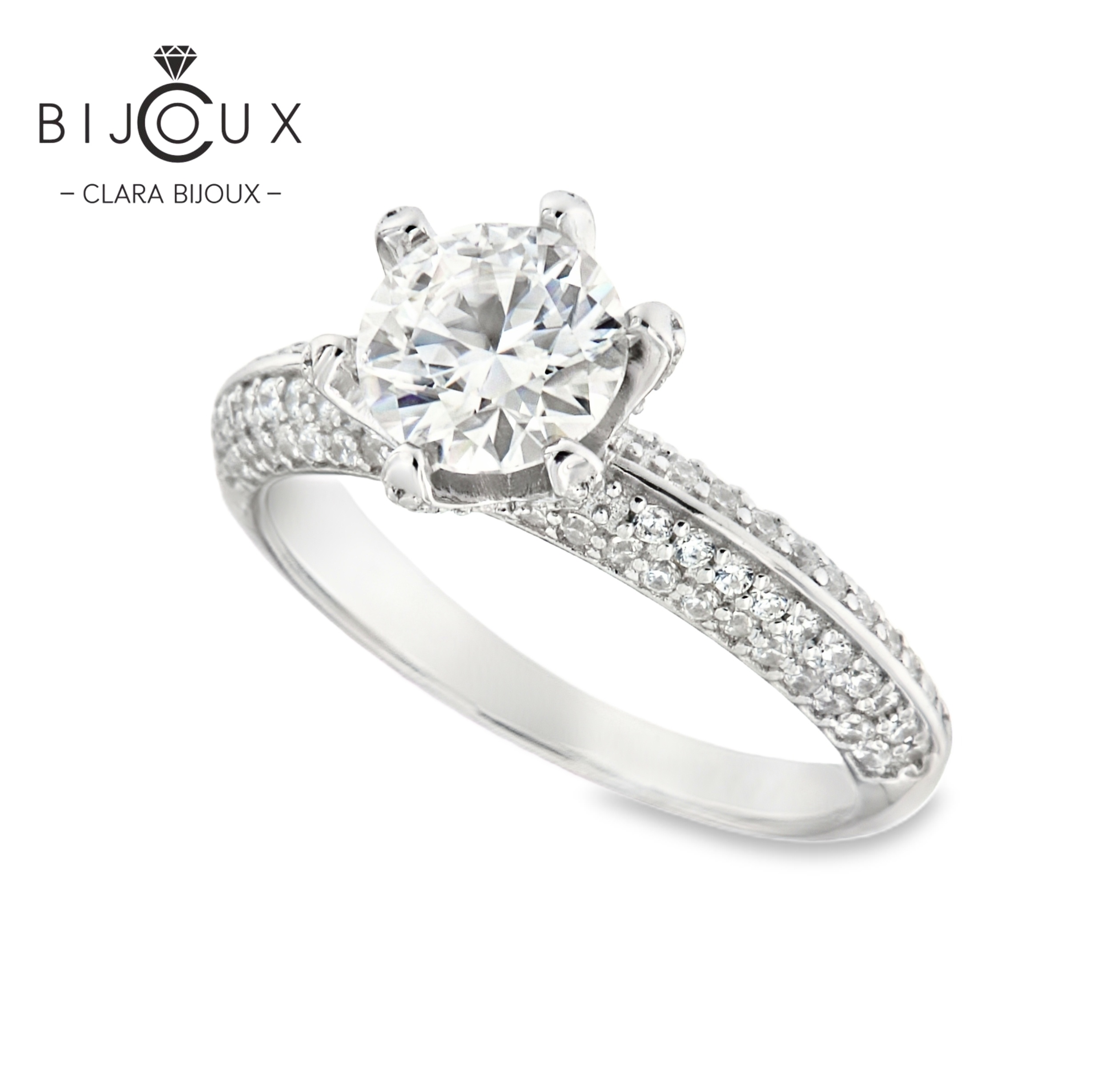 луксозен пръстен с мойсанит 1ct Clara Bijoux изглед отпред