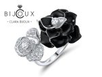 Този изискан сребърен пръстен цвете с емайл Clara Bijoux съчетава артистичен дизайн, елегантност и модерна женственост. Контрастът между дълбокия черен емайл и сияйните бели камъни създава впечатляващ визуален ефект, който привлича погледа и придава изтънчен стил. Формата на двойно цвете символизира нежност, баланс и хармония, превръщайки бижуто в красив акцент към всяка визия.