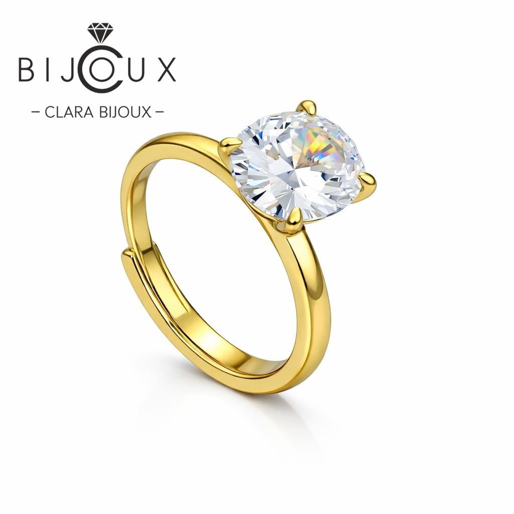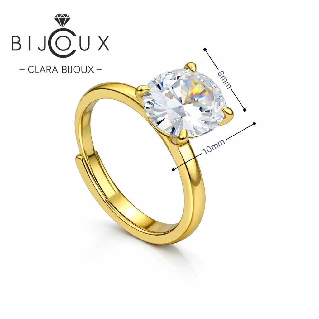 Стилен сребърен пръстен Clara Bijoux с жълта позлатка и овален бял CZ камък. Регулируем размер, изискан блясък и комфорт при носене. Отличава се с топ качество, луксозно опаковане и елегантен дизайн — перфектен избор на топ цена за подарък или специален повод.