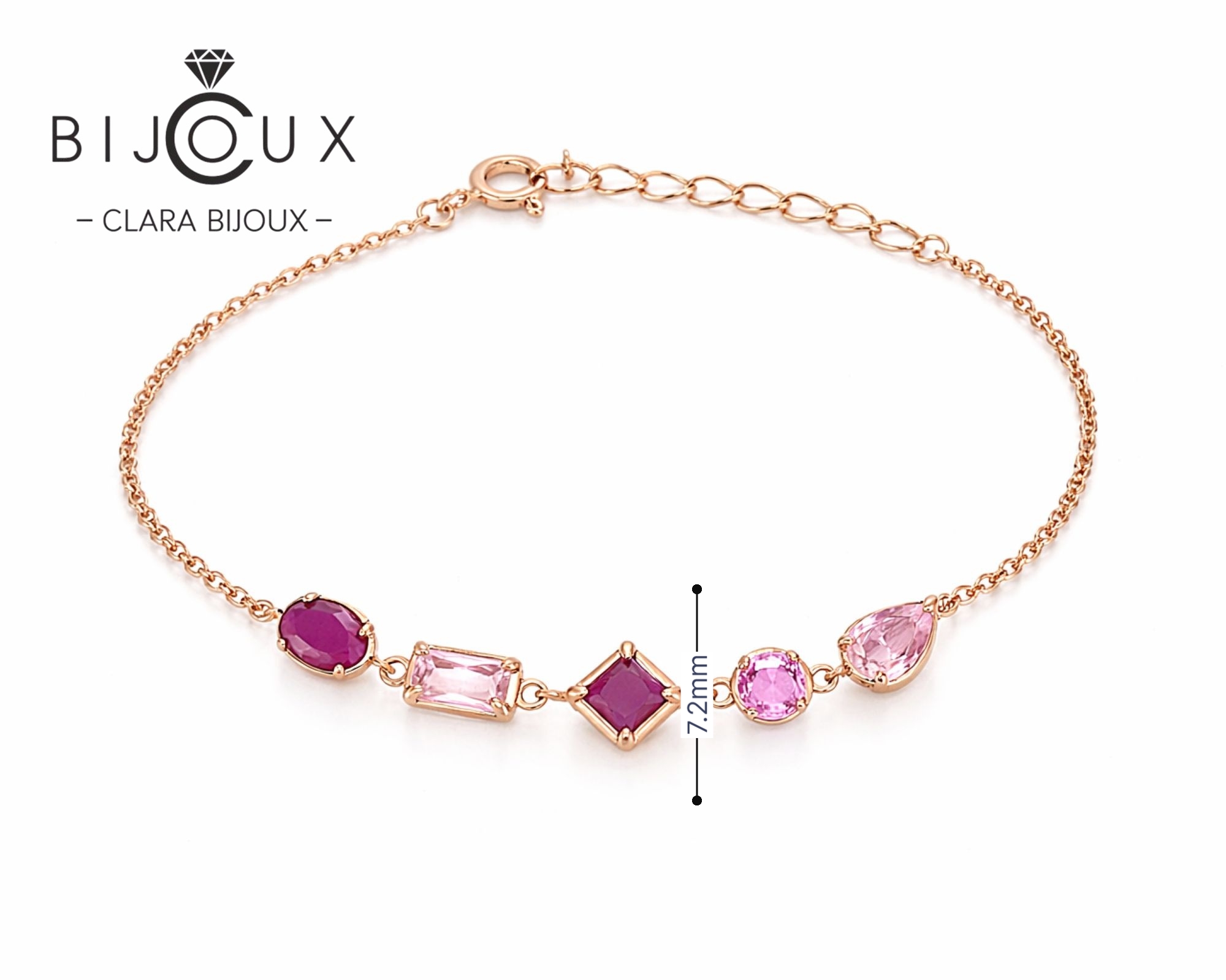 Сребърна гривна цветни циркони с розова позлатка – бутиков дизайнерски модел