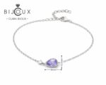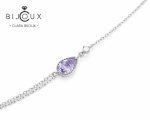 Тази нежна гривна от родирано сребро 925 е истинско въплъщение на елегантността. Централният елемент – камък CZ в нежен лилав оттенък, оформен като капка, създава изтънчено усещане за романтика и женственост. Допълнителният бял камък CZ придава блясък и фин завършек, а двойната верижка подсилва усещането за стил и класа.