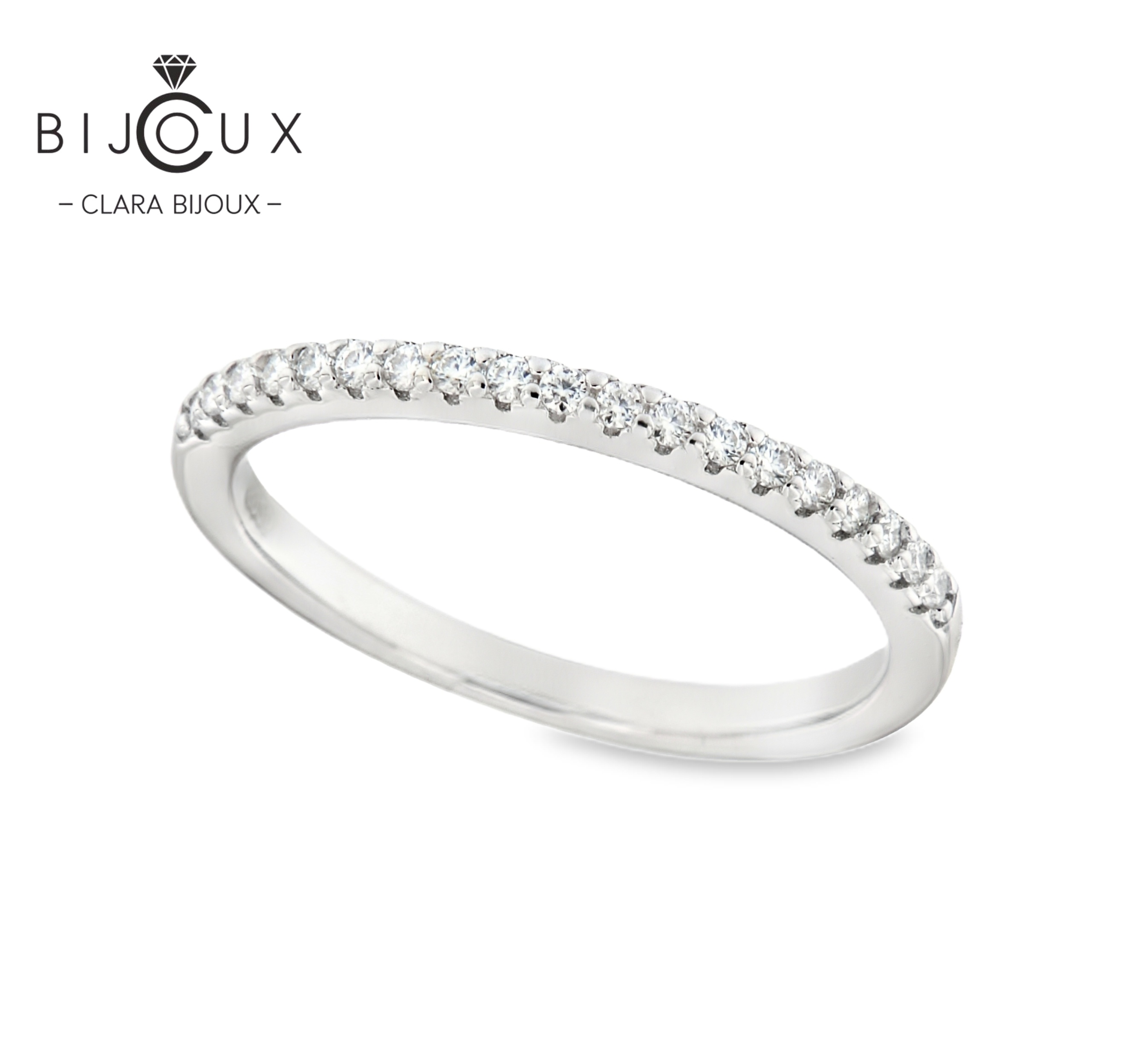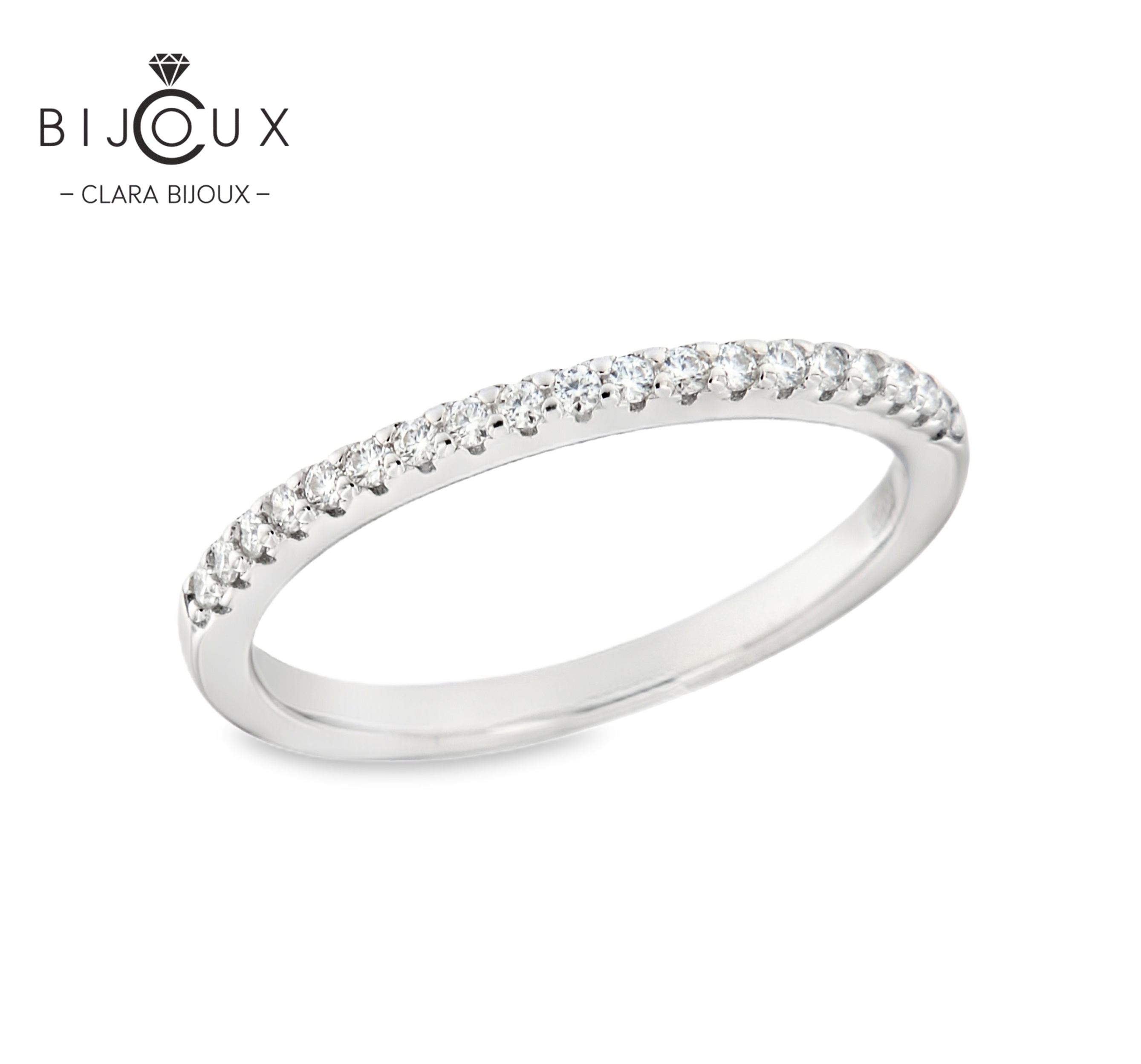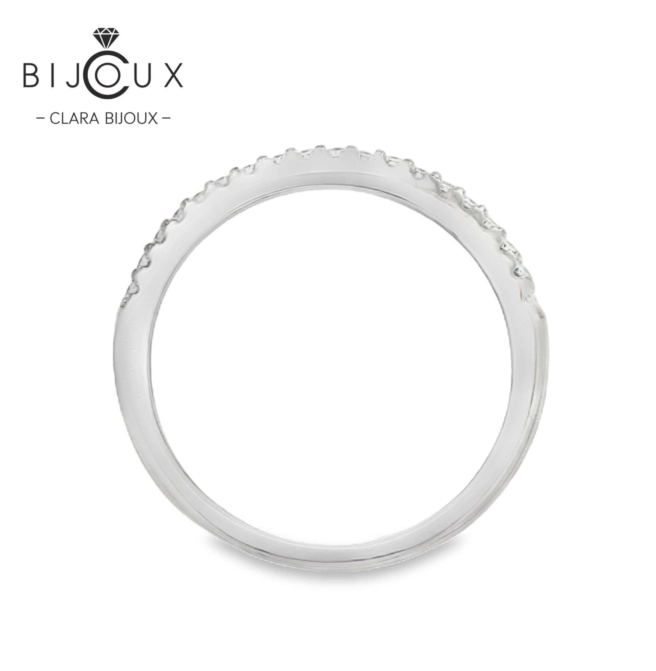 Елегантна халка от сребро 925 с родиево покритие и изискани мойсанити 0.22ct. Прецизна изработка, изтънчена линия и луксозна подаръчна кутия с LED светлина. Подходящ избор за ежедневие и специални поводи.
