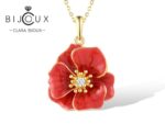 Тази сребърна висулка червено цвете Clara Bijoux е истинско произведение на изкуството. Дизайнът е вдъхновен от разцъфнало цвете, изработено с наситен червен емайл и фини златисти контури, които подчертават всяко листенце. В центъра е поставен бял CZ камък, който придава завършеност и деликатен блясък.