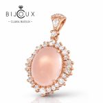 Тази изящна сребърна висулка розов кварц е създадена като символ на нежност, хармония и изтънчен стил. Централният камък – естествен розов кварц с впечатляващо тегло 7ct – излъчва мек розов блясък и създава усещане за спокойствие и женственост. Камъкът е обграден от прецизно инкрустирани декоративни камъни, които подчертават сиянието му и придават на бижуто изключително елегантно излъчване. Розовата позлатка добавя топъл и луксозен оттенък, който усилва красотата на камъка и създава изискан дизайнерски стил.
