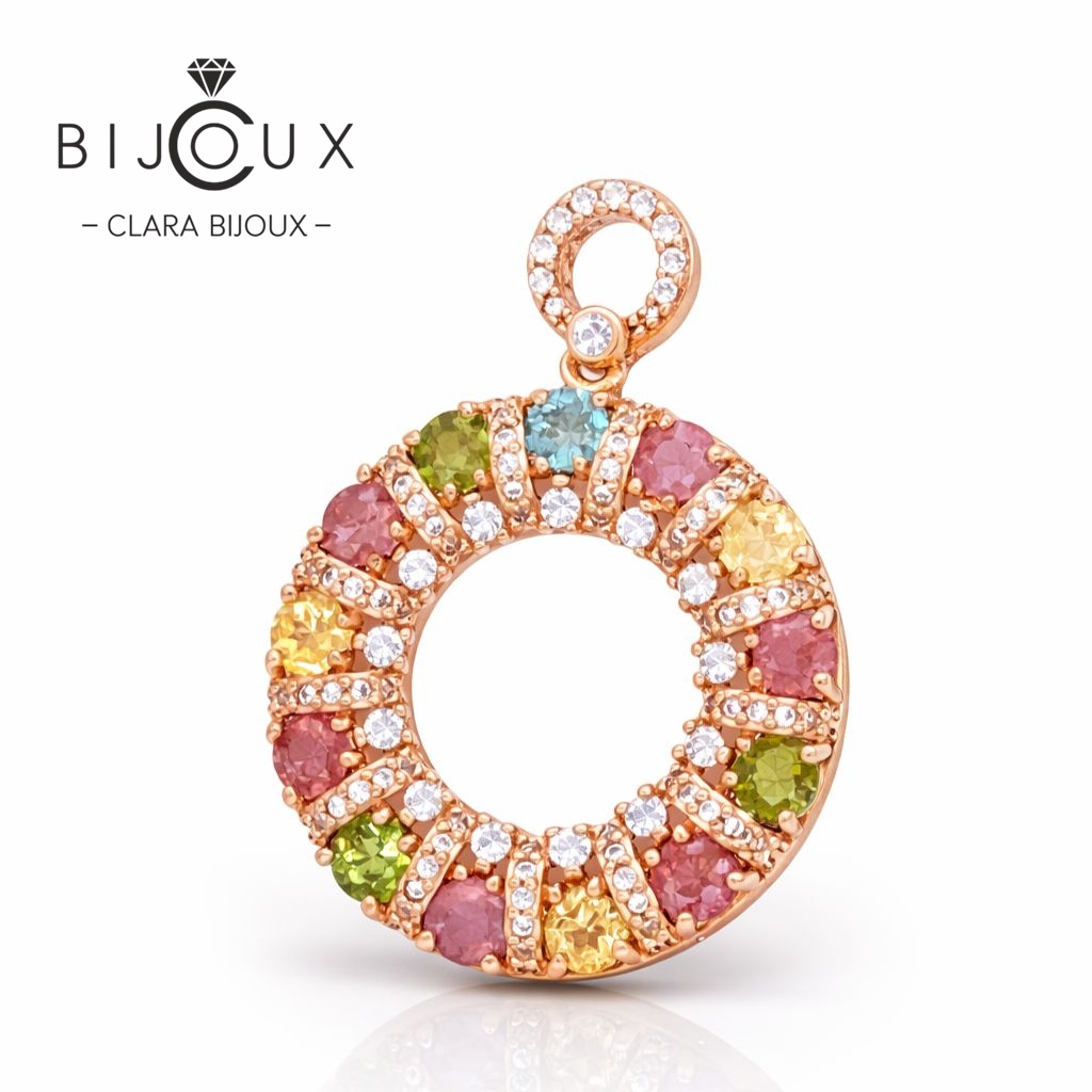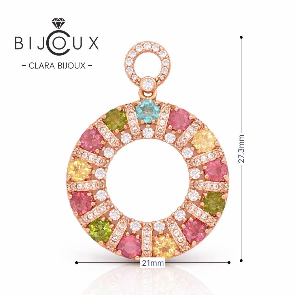 Сребърна висулка с турмалин Clara Bijoux, създадена за жени с усет към цветните скъпоценни камъни и елегантния стил. Централният естествен турмалин с общ карат 2.7ct впечатлява със своя богат и жив блясък, който улавя светлината и придава изразителност на бижуто. Декоративните бели CZ камъни около него създават допълнително сияние и подчертават луксозната визия. Розовата позлатка придава мек топъл оттенък и допълва романтичното и изискано излъчване, като същевременно предпазва бижуто и запазва неговия блясък за дълго време.