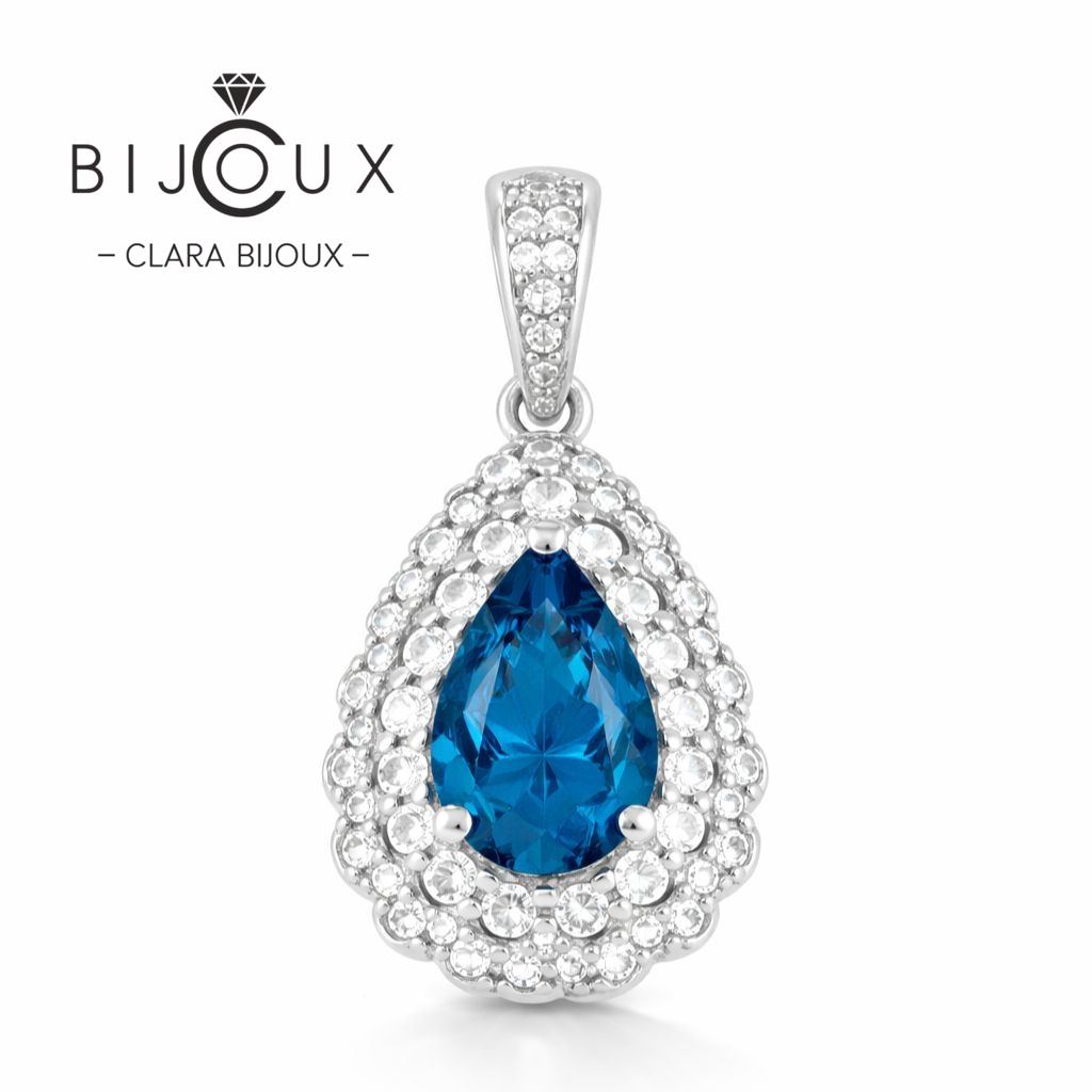 Сребърна висулка със London Blue Topaz Clara Bijoux с родиево покритие и блестящи бели CZ. Елегантен дизайн, топ качество и луксозно опаковане.